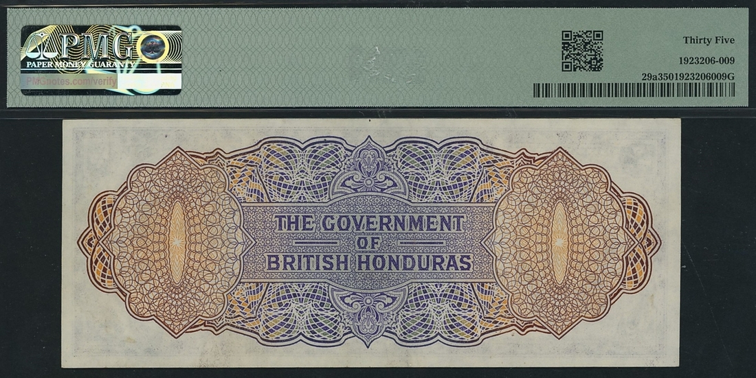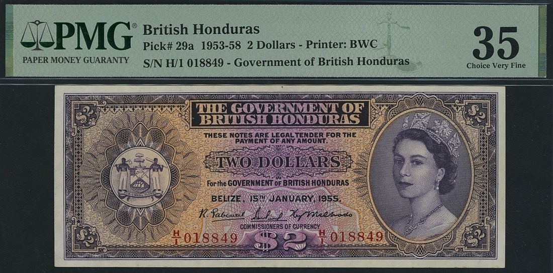 (x) Government of British Honduras, 2 Dollars, 15th January 1955, serial number H/1 018849, (Pick 29a, BNB 128b) in PMG holder 35 Choice Very Fine