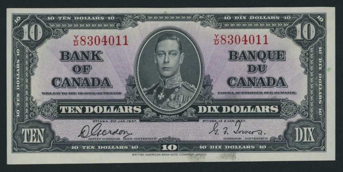 Bank of Canada, 10 Dollars, Ottawa, 2nd January 1937, serial number Y/D 8304011, (Pick 61b, BNB 324b), good extremely fine