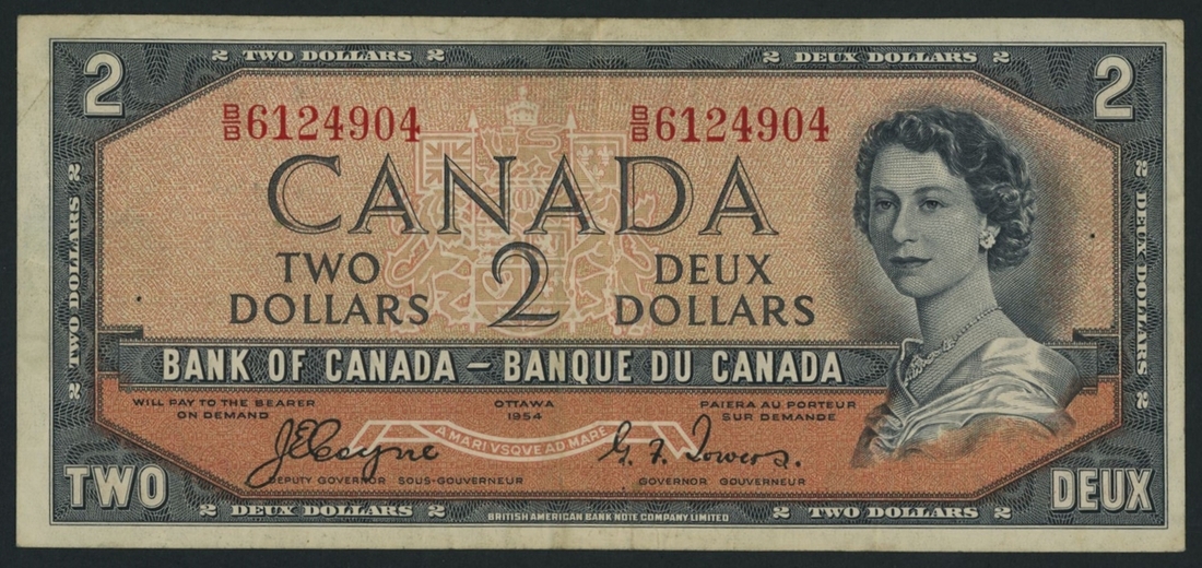 (x) Bank of Canada, Devil's Face Portrait, $2, Ottawa, 1954, serial number B/B 6124904, (Pick 67a, BNB 330a), extremely fine, pinhole