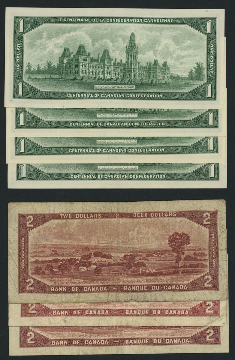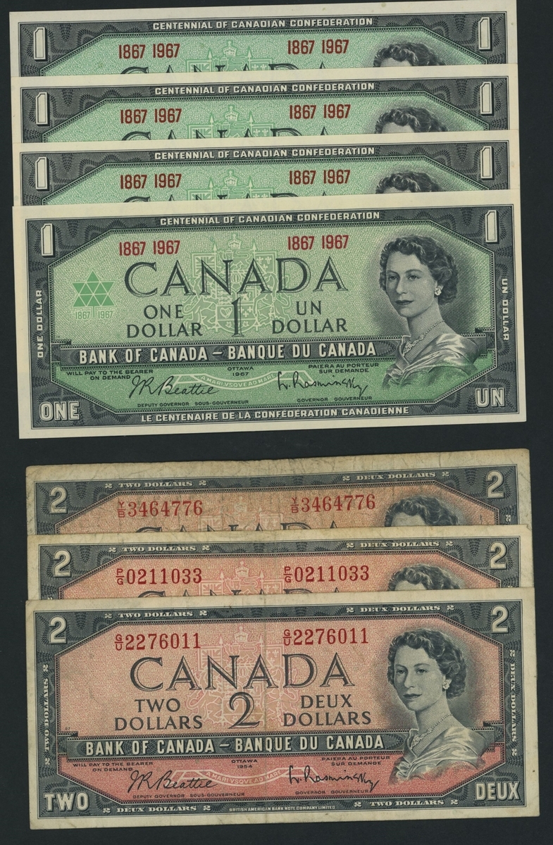 (x) Bank of Canada, Modified Portrait and Commemorative Issues, [7 notes] $1, $2, Ottawa, 1954-1967,