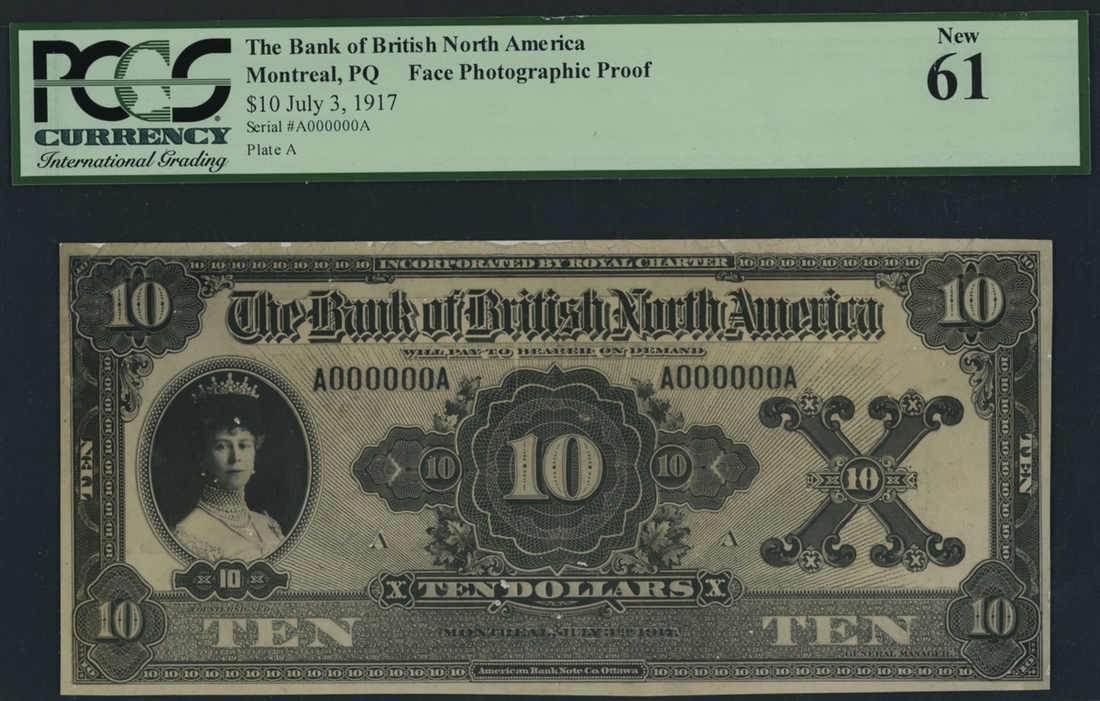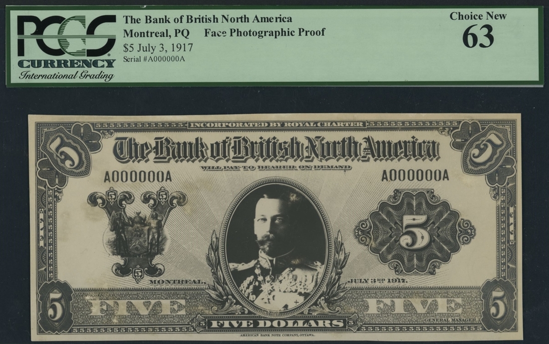 Obverse Photographic Proof (2) $5 $10, , Montreal, 3rd July 1917, serial numbers A000000A, printed by the American Bank Note Company, Ottawa,