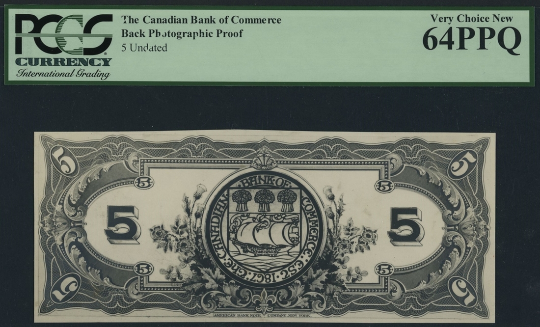 Reverse Photographic Proof $5, ND (1917), printed by the American Bank Note Company, Ottawa,