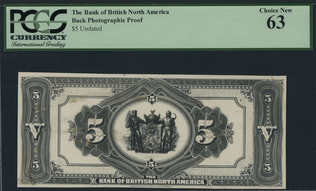 Reverse Photographic Proof $5, ND, printed by the American Bank Note Company, Ottawa