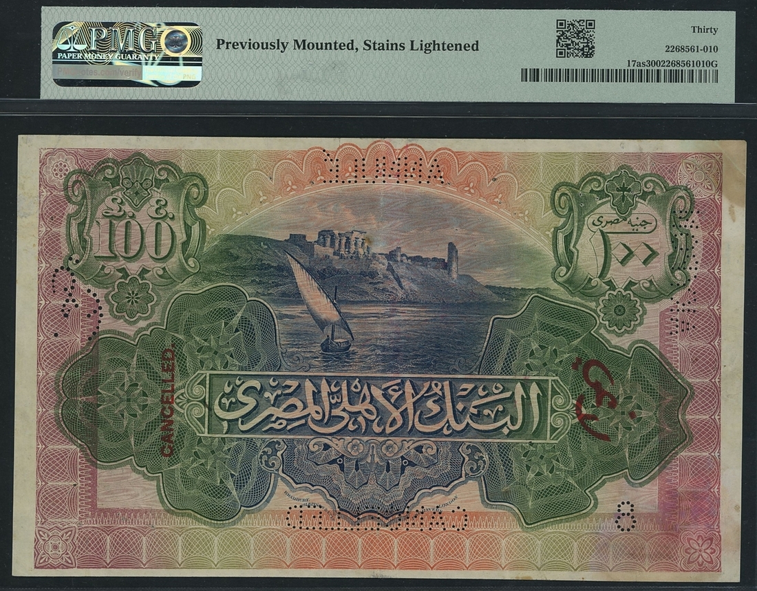 (x) National Bank of Egypt, specimen £100, 1st March 1921, signature Hornsby,
