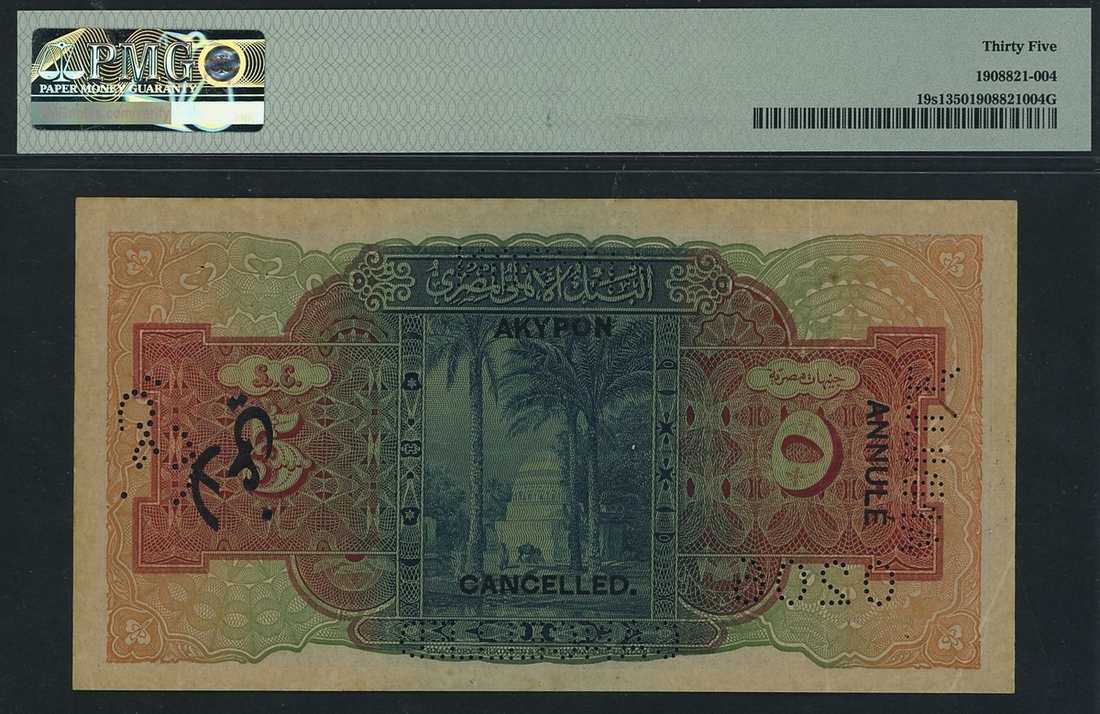 (x) National Bank of Egypt, specimen £5, 1924-45, serial number 0206, (Pick 19s1, BNB 117s) in PMG holder 35 Choice Very Fine