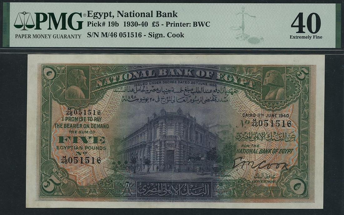 (x) National Bank of Egypt, £5, 1930-40, serial number M/46 051516, signature Cook,