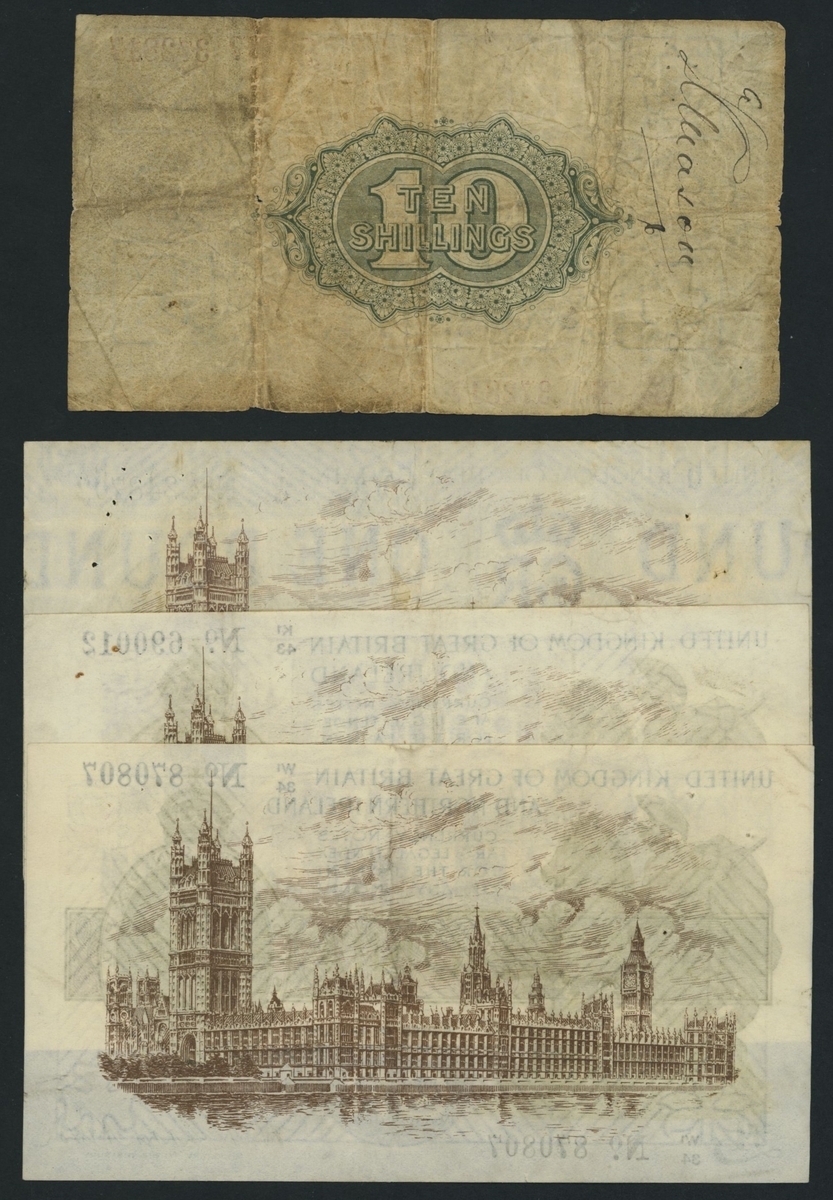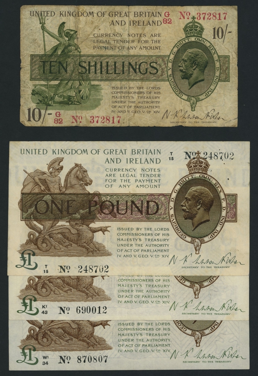 (x) Treasury Series, N. F. W. Fisher, [4 notes] 10 Shillings, £1, 1919-27,