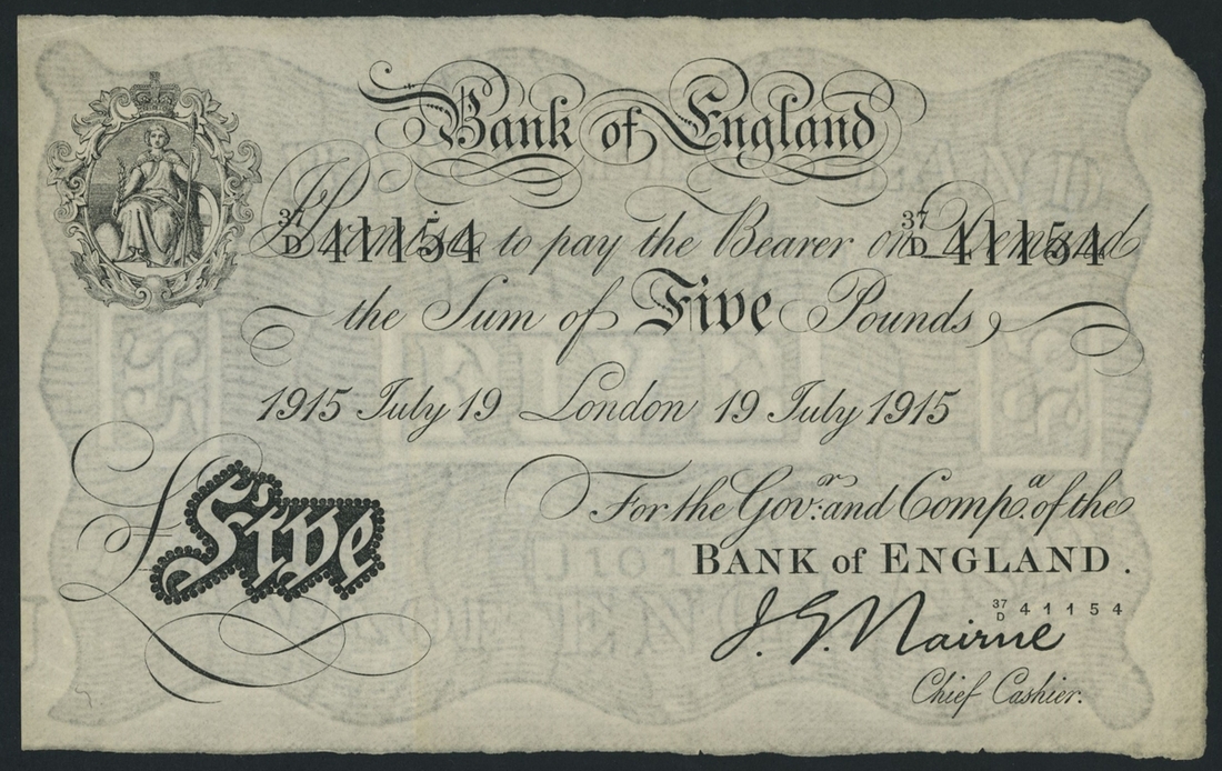 (x) Bank of England, J. G. Nairne, £5, London, 19th July 1915, serial number 37/D 41154, (EPM B208b), solid very fine