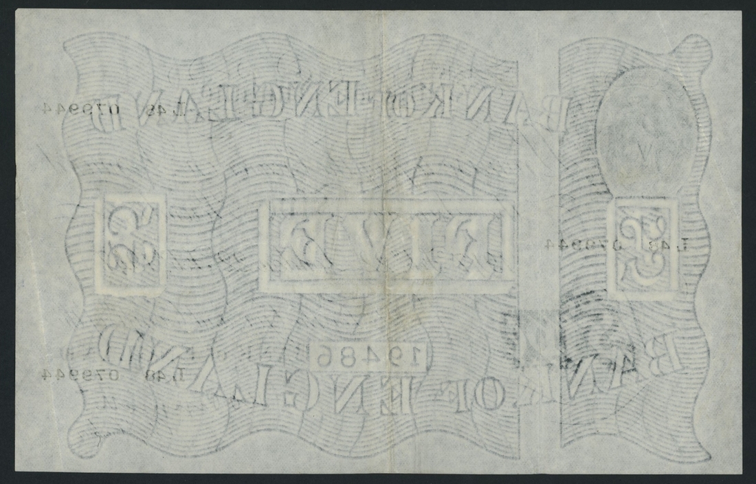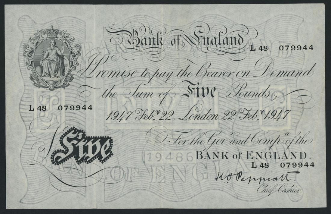 (x) Bank of England. K. O. Peppiatt, £5, London, 22nd February 1947, serial number L48 079944, (EPM B228), solid very fine