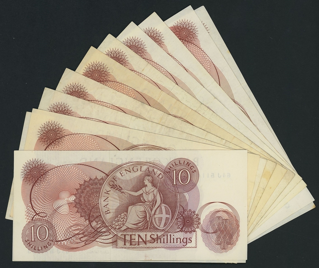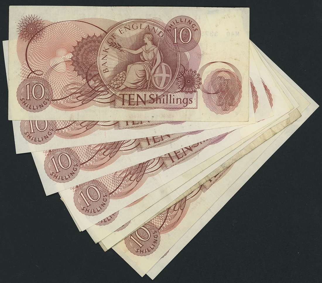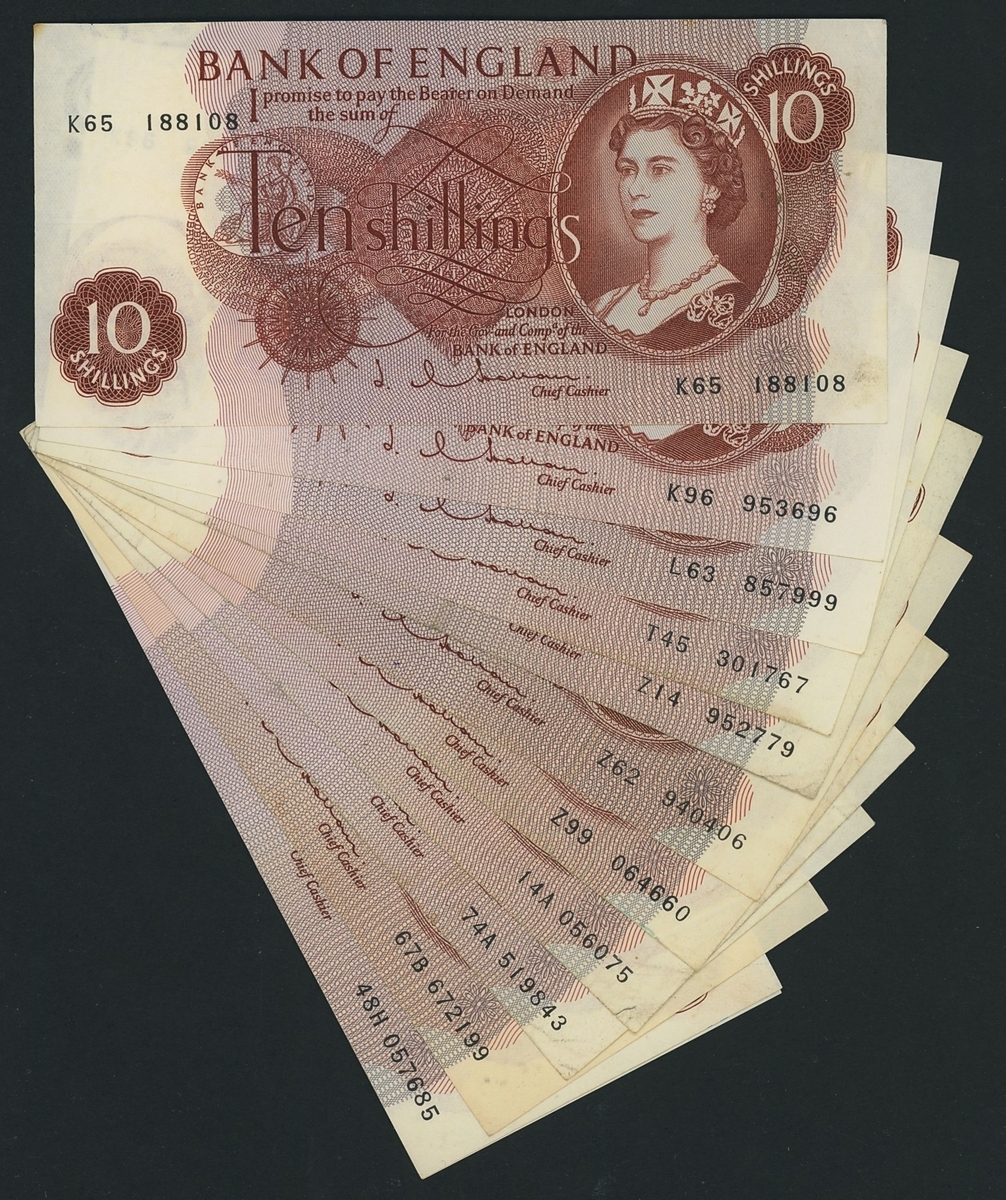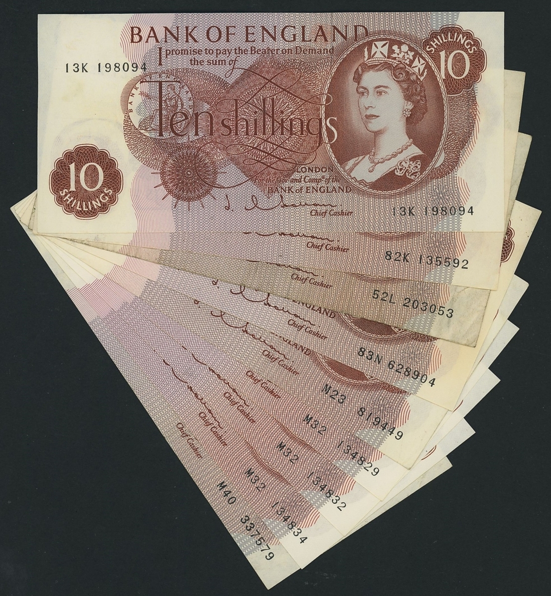 Bank of England, J. Q. Hollom, [22 notes] 10 Shillings, ND (1963), including first and last run prefixes and pair of consecutive serial numbers and 5 replacement notes,