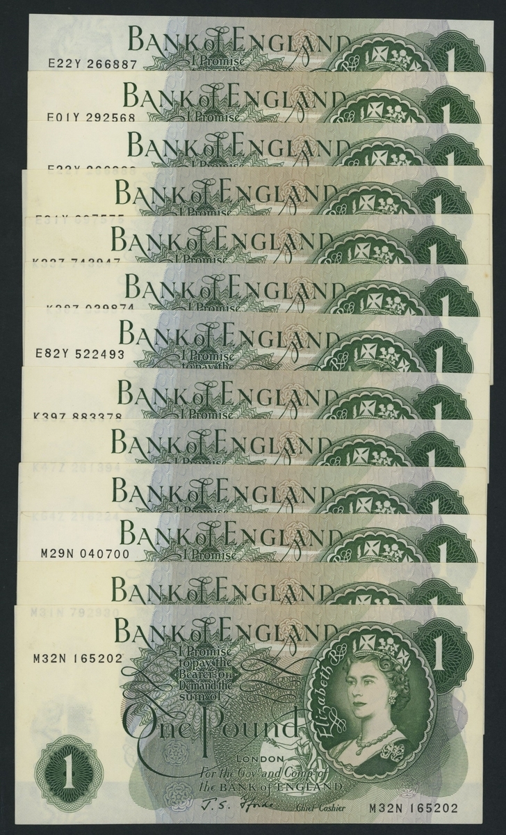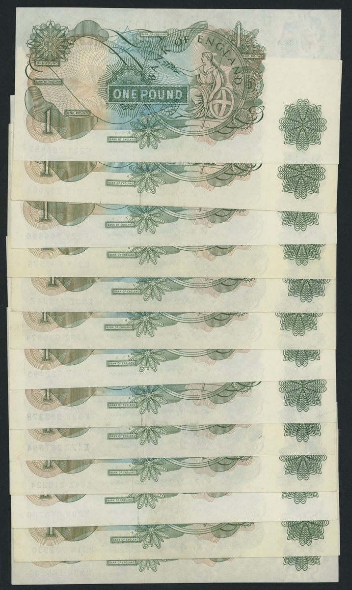 Bank of England, J. S. Fforde, [13 notes] replacement £1, ND (1967), including first run prefixes and pair of consecutive serial numbers,