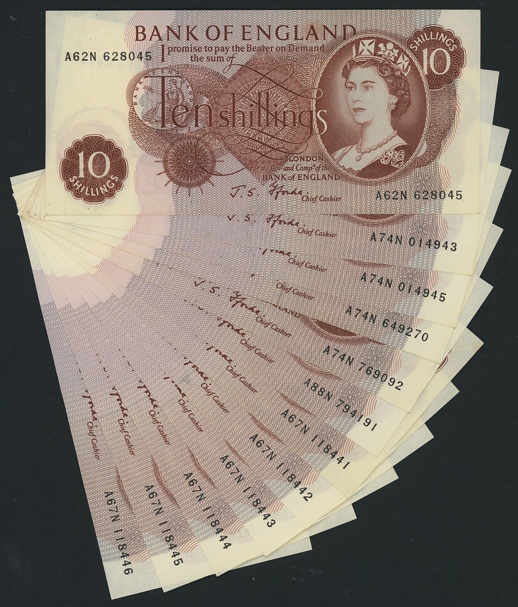 Bank of England, J. S. Fforde, [61 notes] 10 Shillings, ND (1967), including consecutive serial numbers