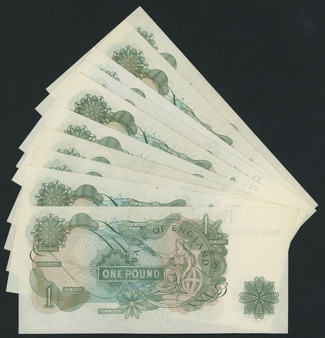 Bank of England, J. B. Page, [22 notes] replacement £1, ND (1971), including mid first prefix, last run prefix, and some consecutive serial numbers,