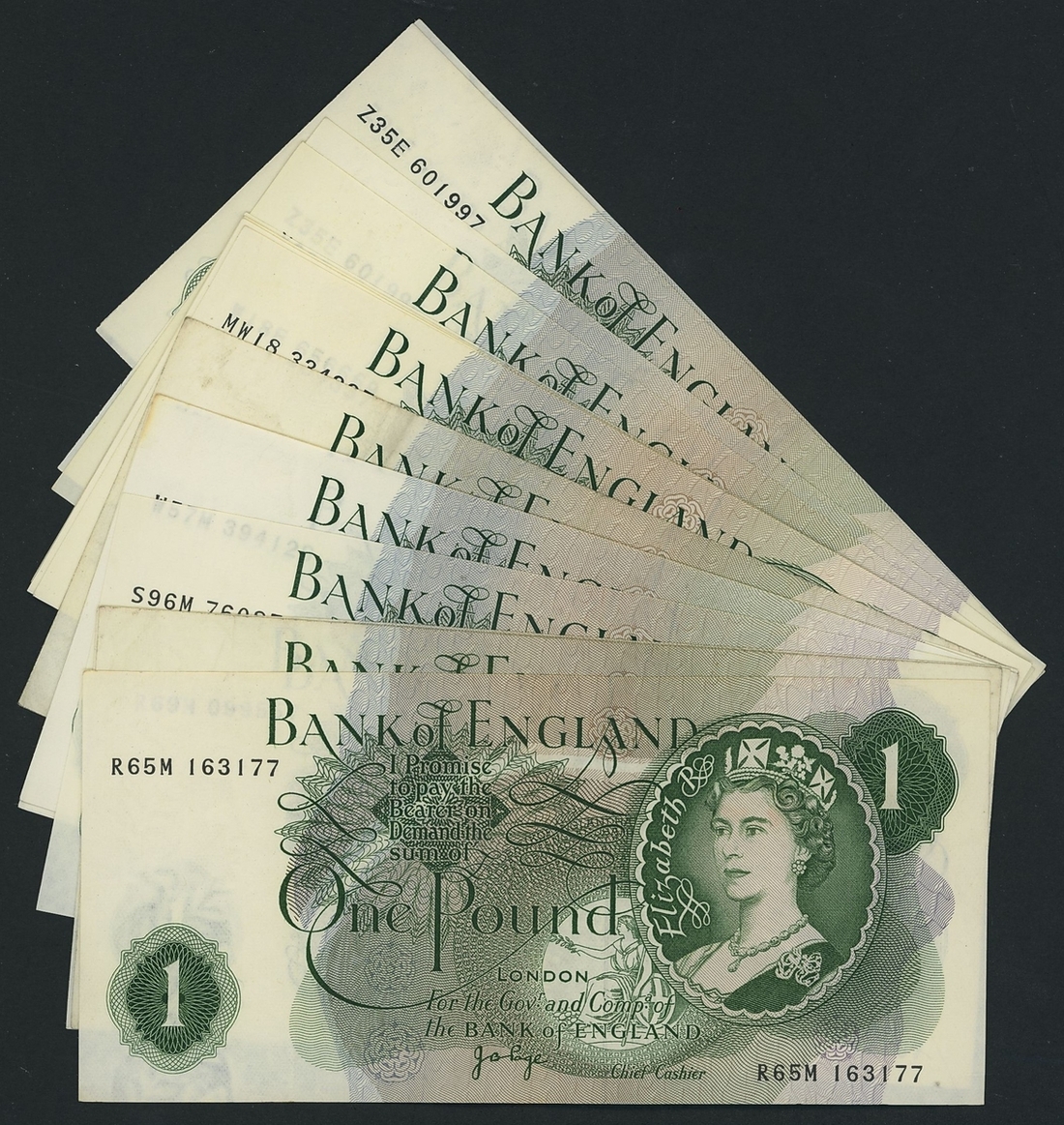 Bank of England, J. B. Page, [63 notes] £1, ND (1970), including last series prefix and some consecutive serial numbers. Lot also includes 9 replacement notes,