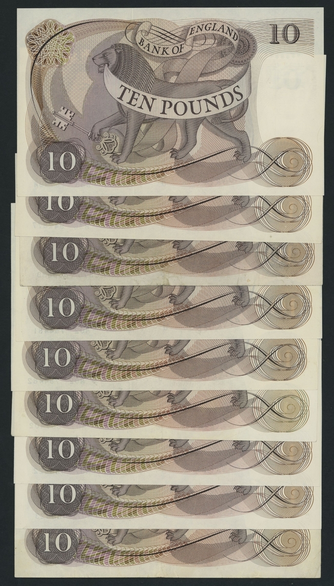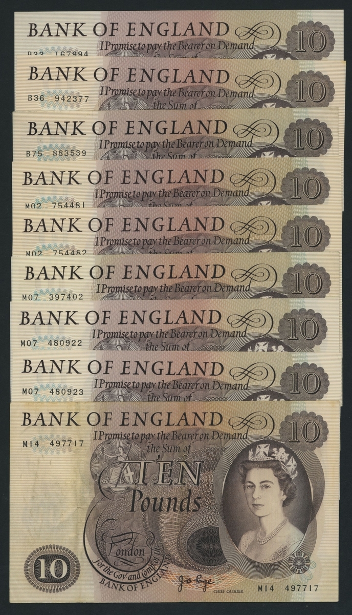 Bank of England, J. B. Page, [9 notes] £10, ND (1970), £10, serial numbers B33 167994, B36 942377, B75 883539,