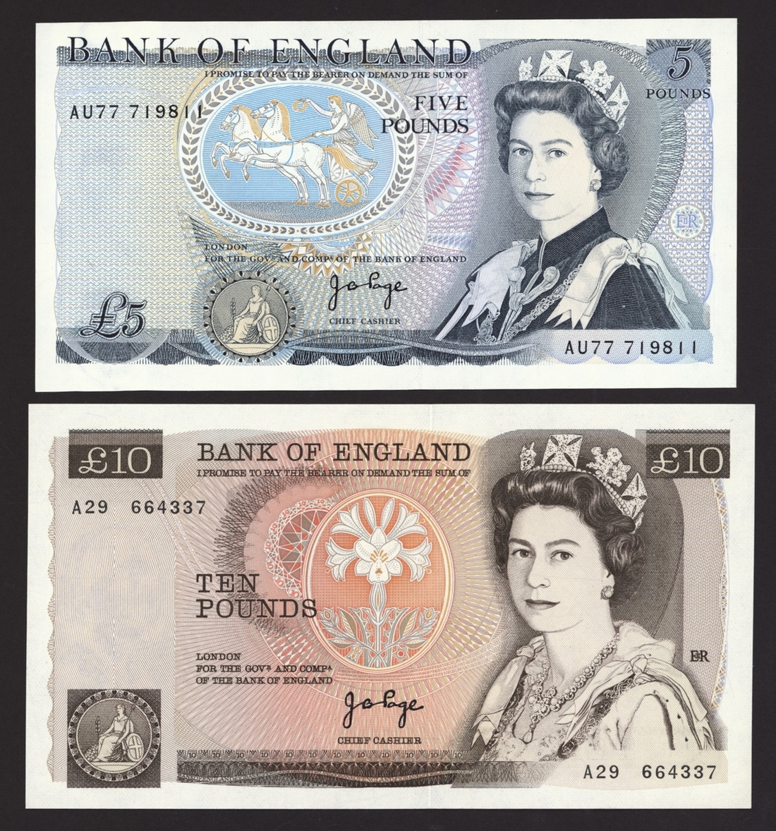 Bank of England, Page signature, [3 notes] [including FIRST SERIES notes] £5, £10, £20, 1970-75,