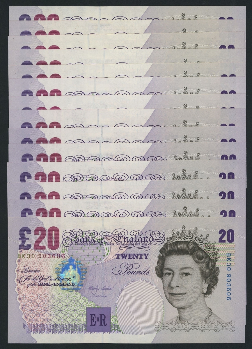 Bank of England, M. Lowther, [14 notes] £20, ND (1999), (EPM B386), about uncirculated to uncirculated (14 notes)