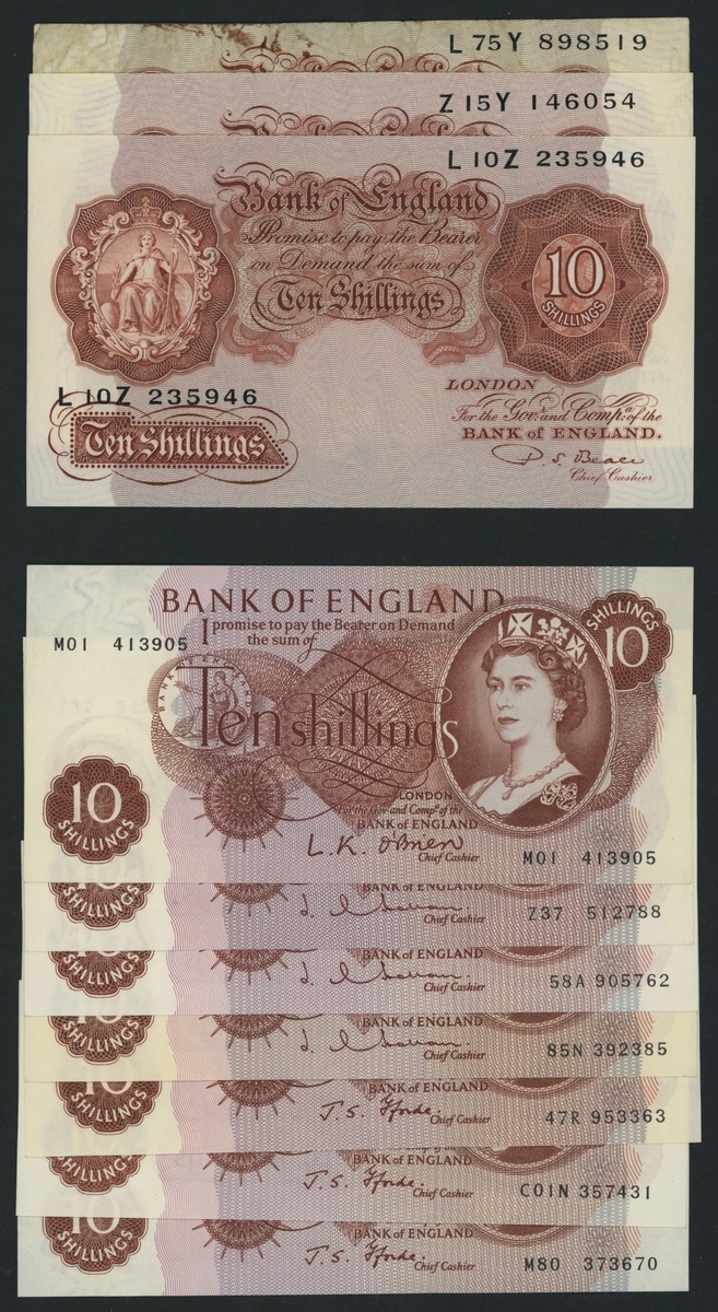 (x) Bank of England, [10 notes] 10 Shillings, 1950-67,