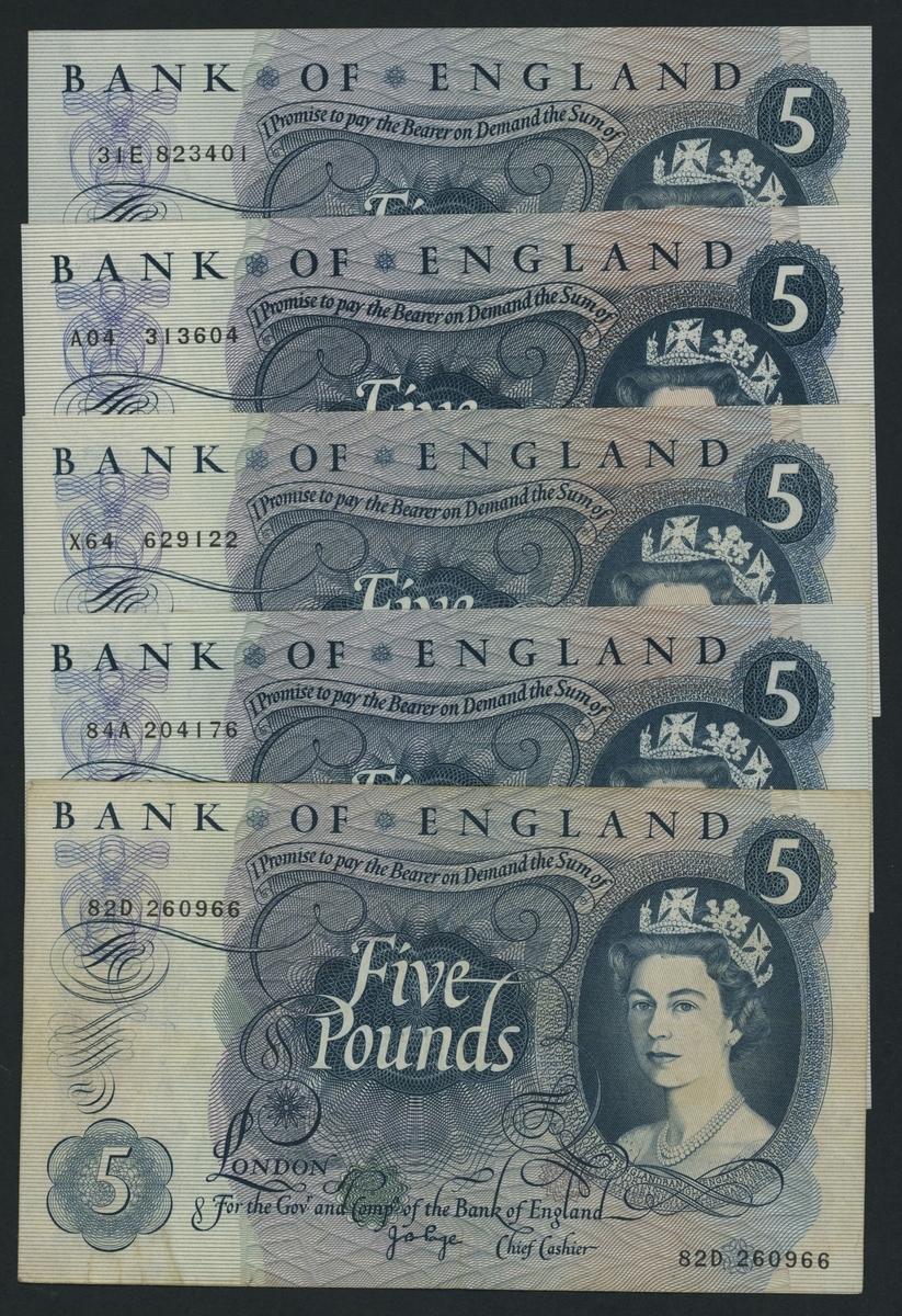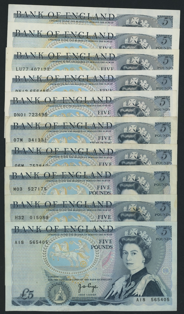 (x) Bank of England, [16 notes] £5, 1961-88,