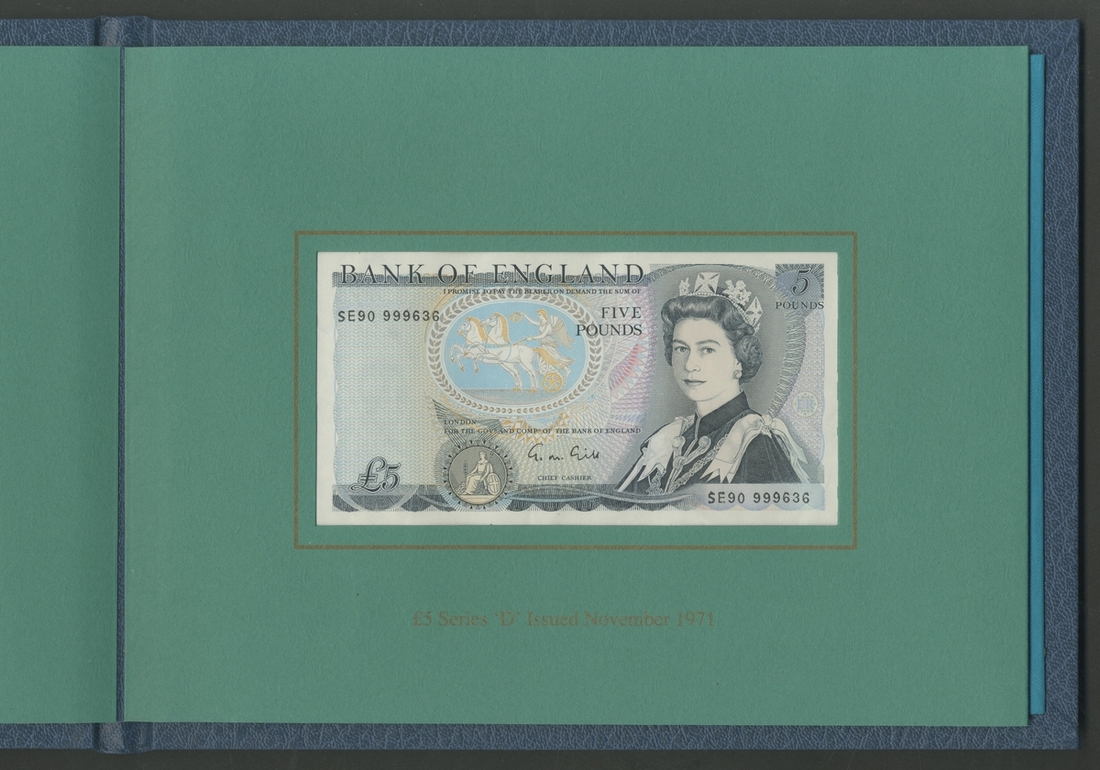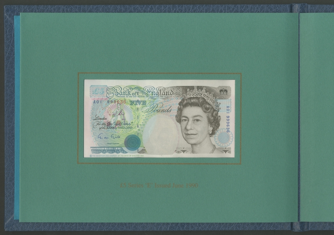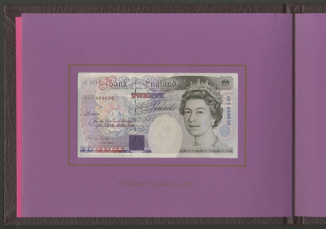 Bank of England, Debden Security Printing, [4 notes] FIRST AND LAST £5, £20, Gill, 1990-1, £5, 1990, serial numbers A01 and SE90 999636,