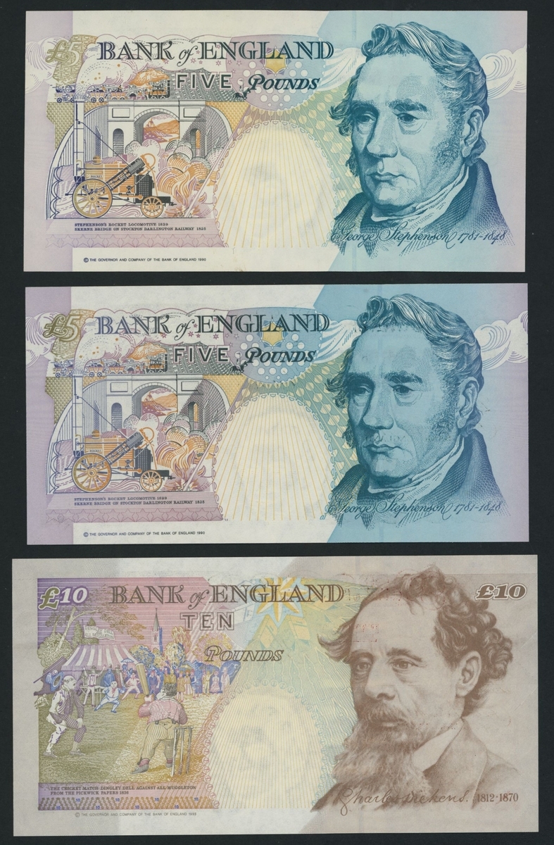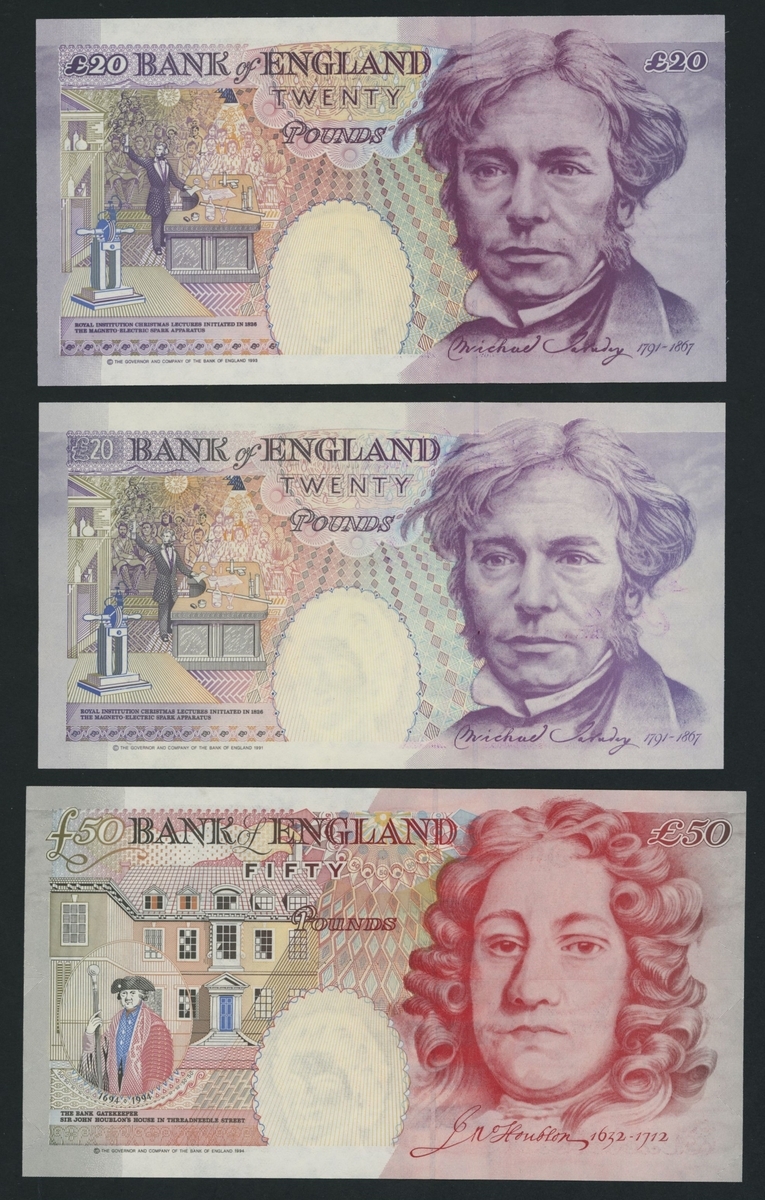 Bank of England, Serial Number Sets, [6 notes] £5, £10, £20, £50, 1994-9, Gill signature FIRSTS matching serial numbers, ND (1994), £5 A01 001263 and £20 A01 001263,