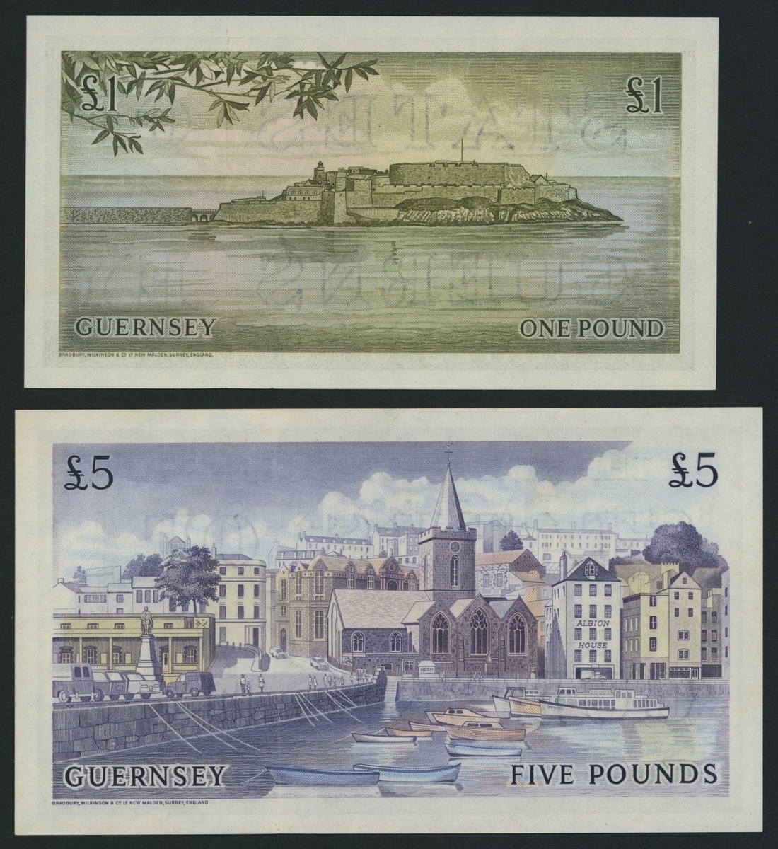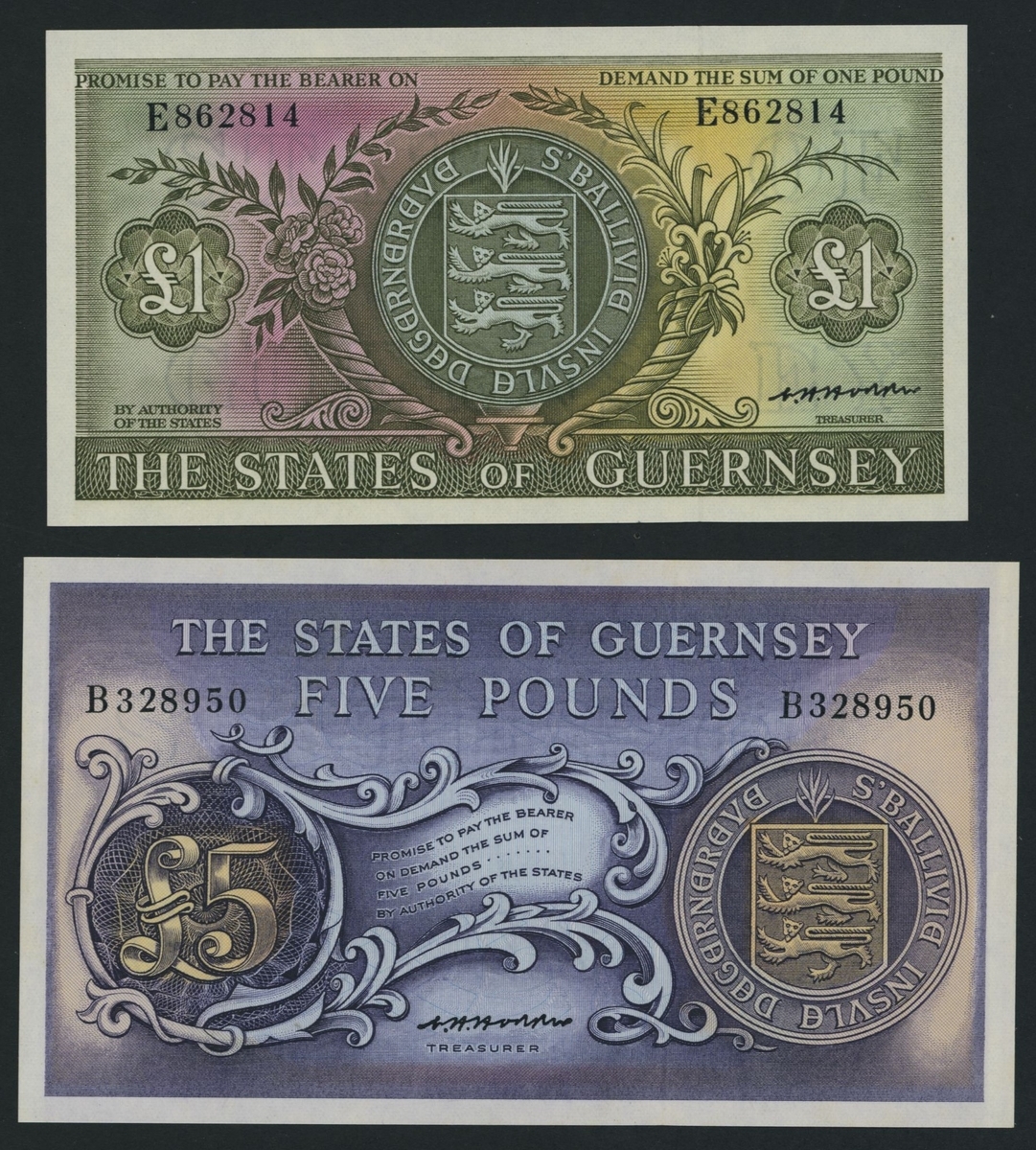 States of Guernsey, [2 notes], £1, £5, (1969), Hodder signatures,
