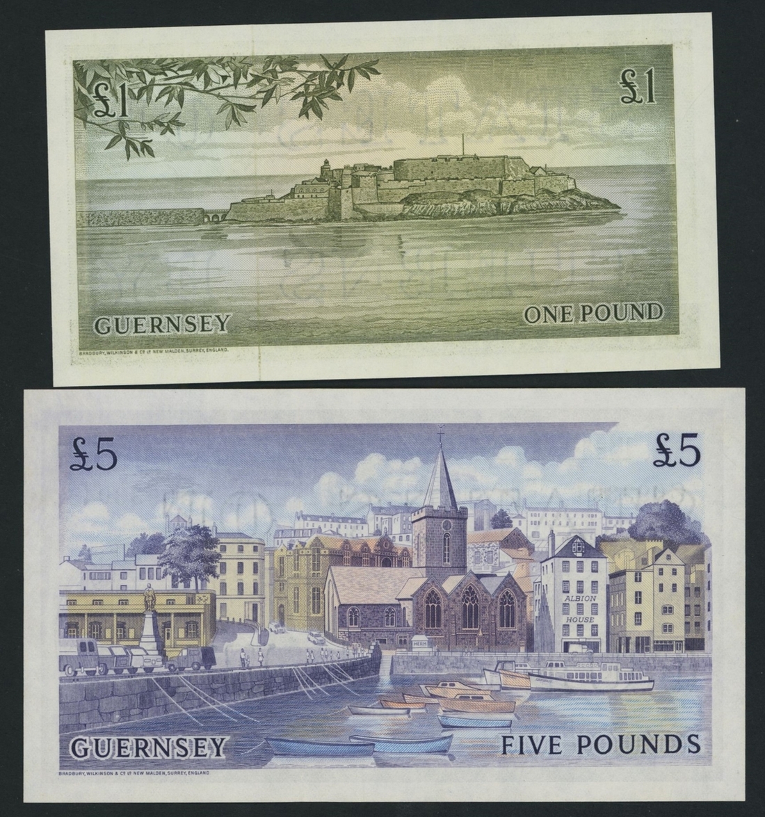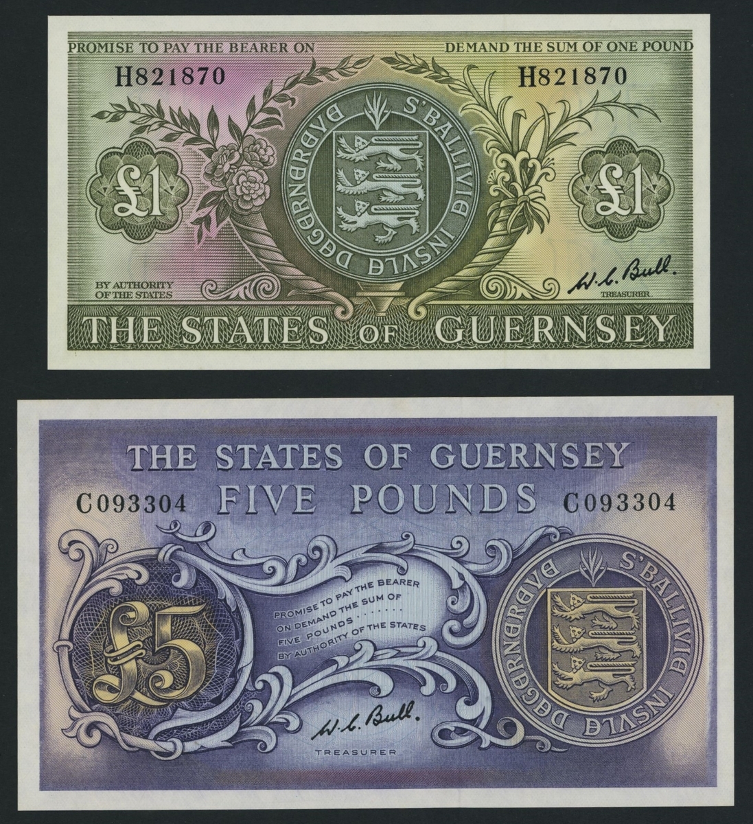 States of Guernsey, [2 notes], £1, £5, (1969), Bull signatures,