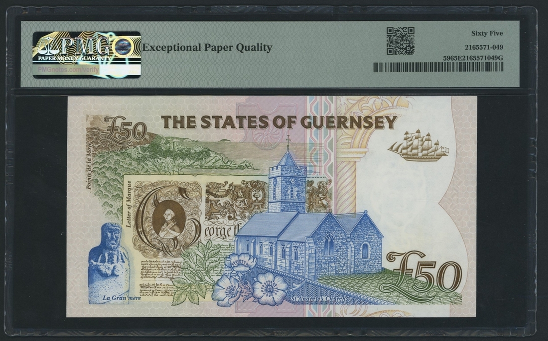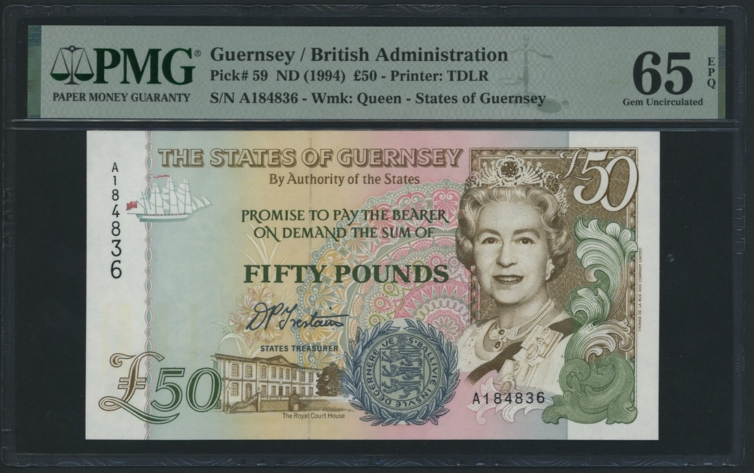 States of Guernsey, £50, ND (1994), serial number A184836, (Pick 59, BNB 164), in PMG holder 65 EPQ Gem Uncirculated