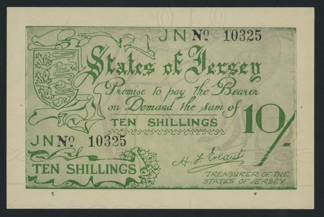 States of Jersey, German Occupation, 10 /-, ND (1941-42), 10325, (Pick 5a), about uncirculated