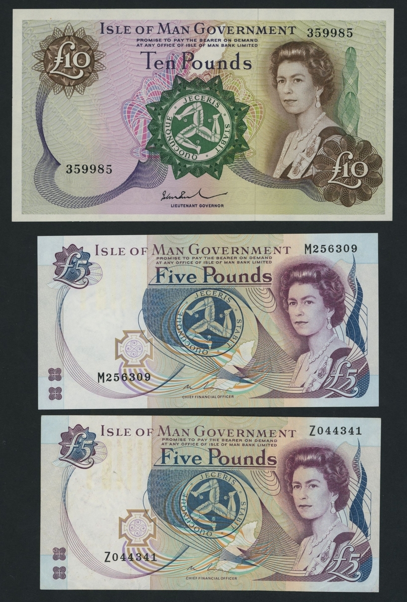 Isle of Man Government, [3 notes] £5, £10, 1974-2015,