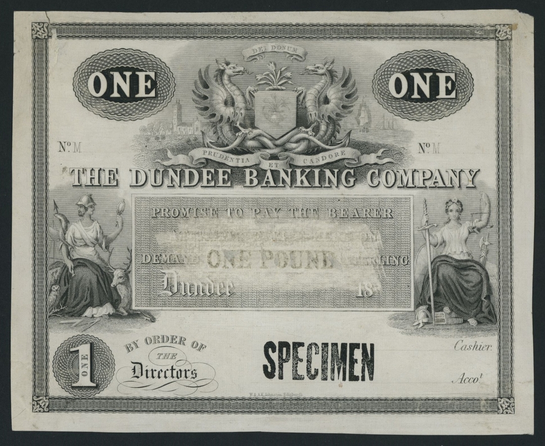 (x) Dundee Banking Company, proof £1, Dundee, dated 18--, M, stamped 'SPECIMEN' overprint on obverse, uniface,