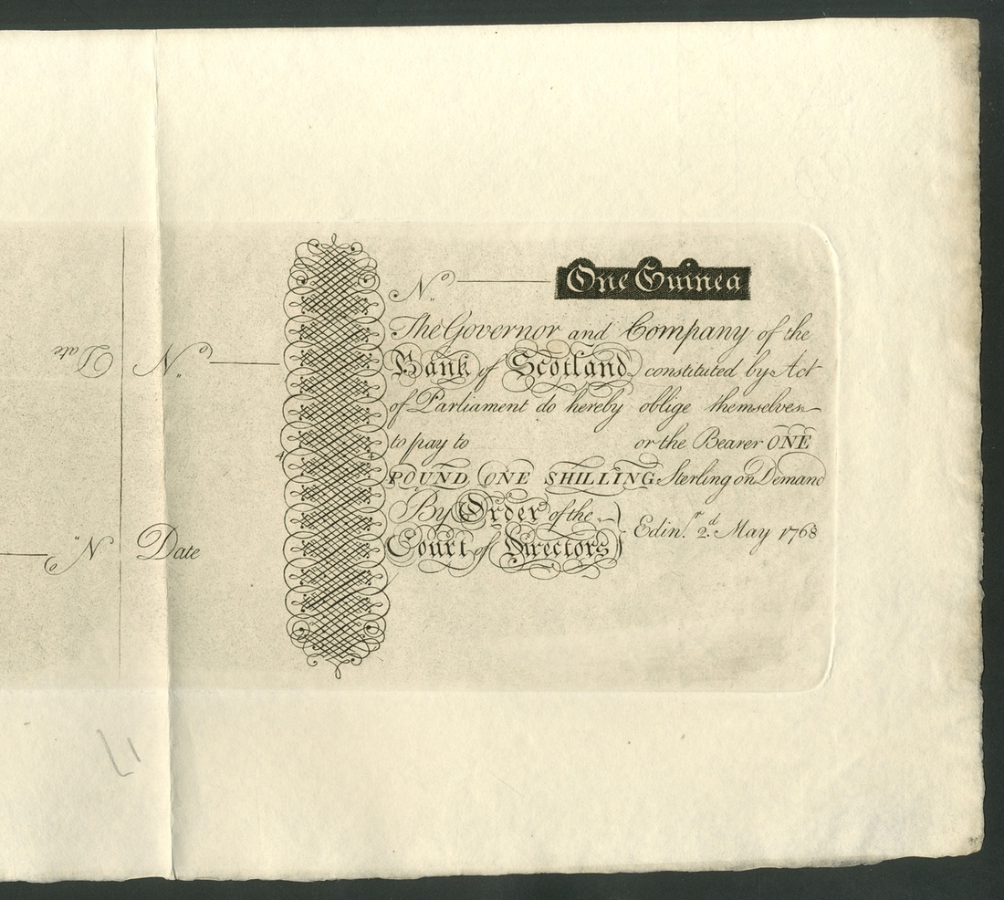 (x) Bank of Scotland, [4 notes] 2 uncut sheets of 1 notes, proof £1, 1 Guinea, uncut sheet proof £1, Edinburgh, undated,
