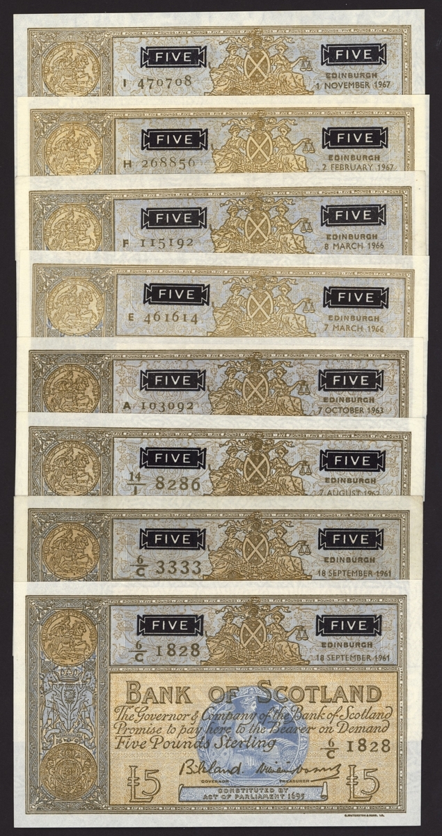 (x) Bank of Scotland, [8 notes] £5, Edinburgh, 1961-7,