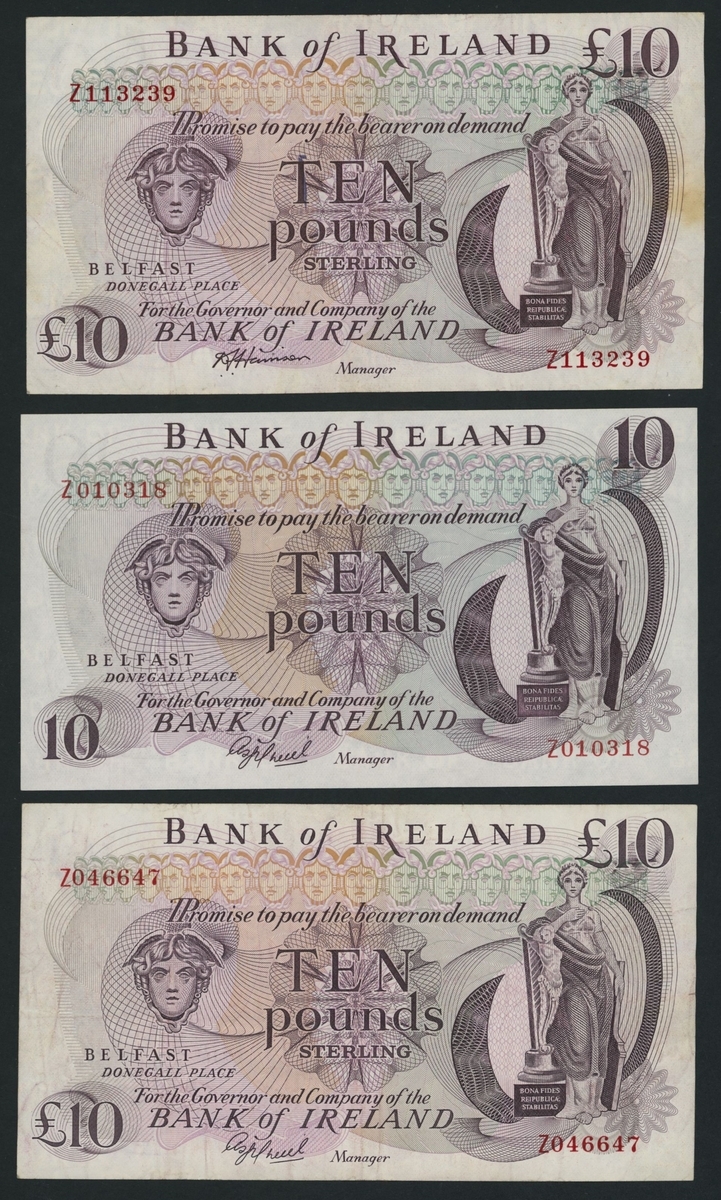 Bank of Ireland, [3 notes], replacement £10 notes, ND (1977-1985),