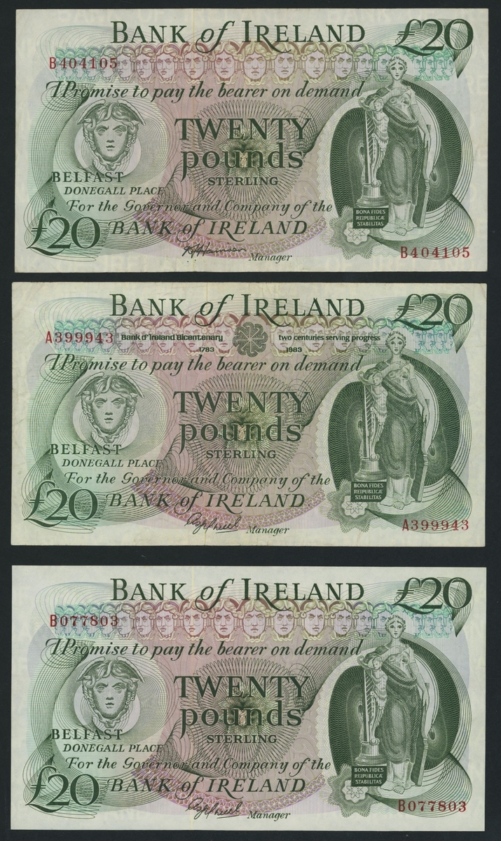 Bank of Ireland, [3 notes], £20, ND (1983-1985),