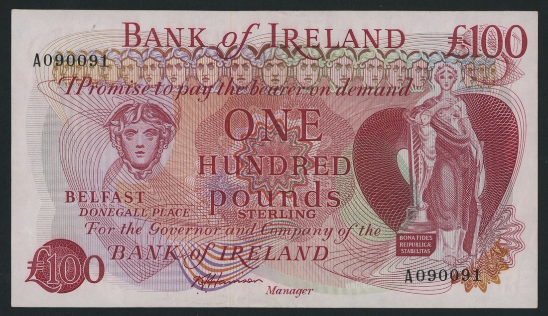 Bank of Ireland, £100, ND (1985), serial number A090091, (PMI BA 126), extremely fine