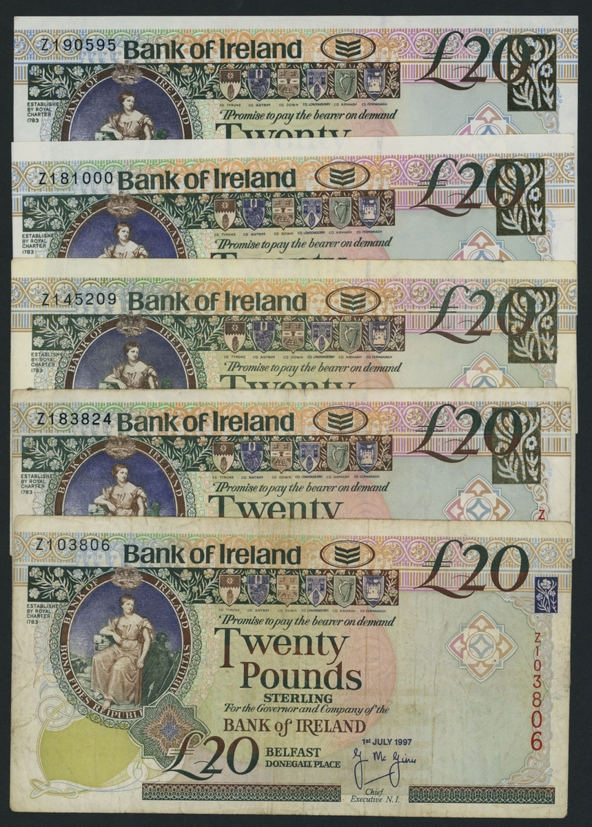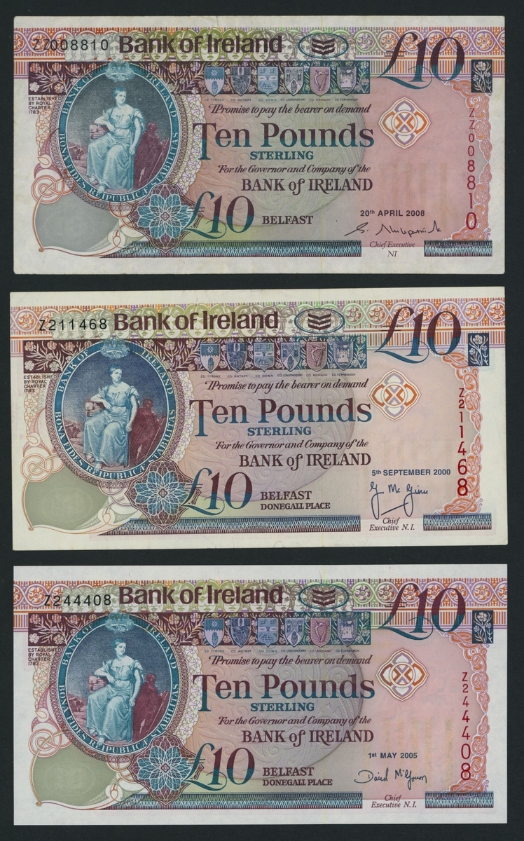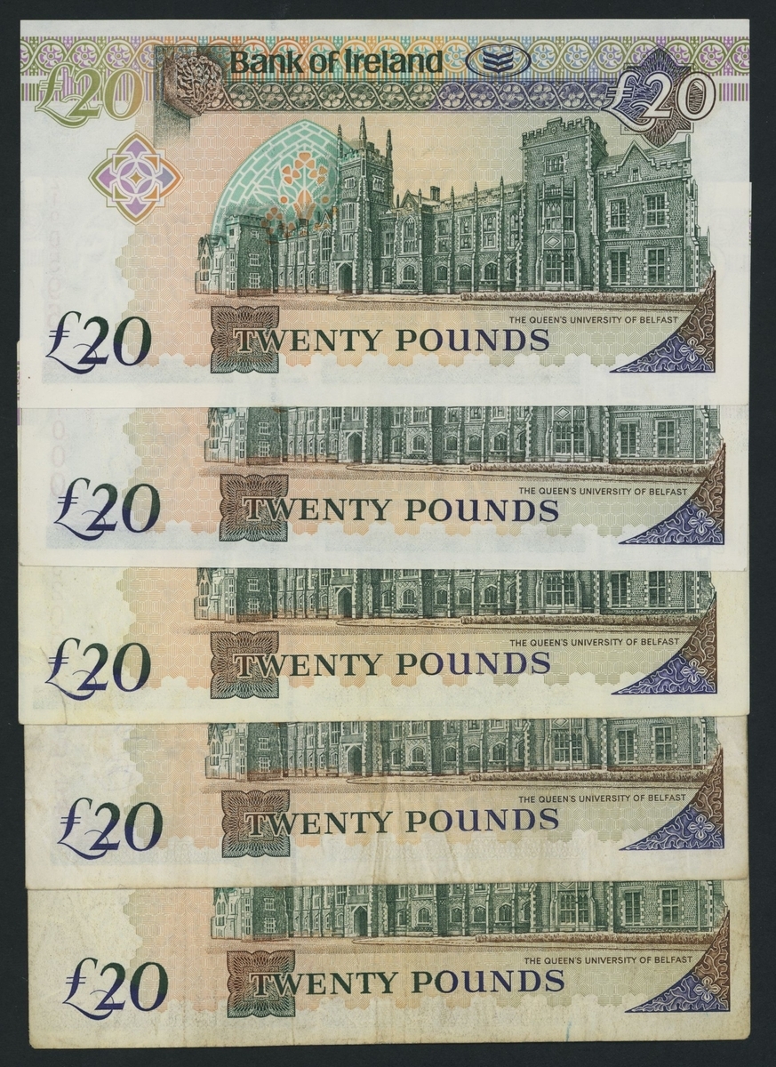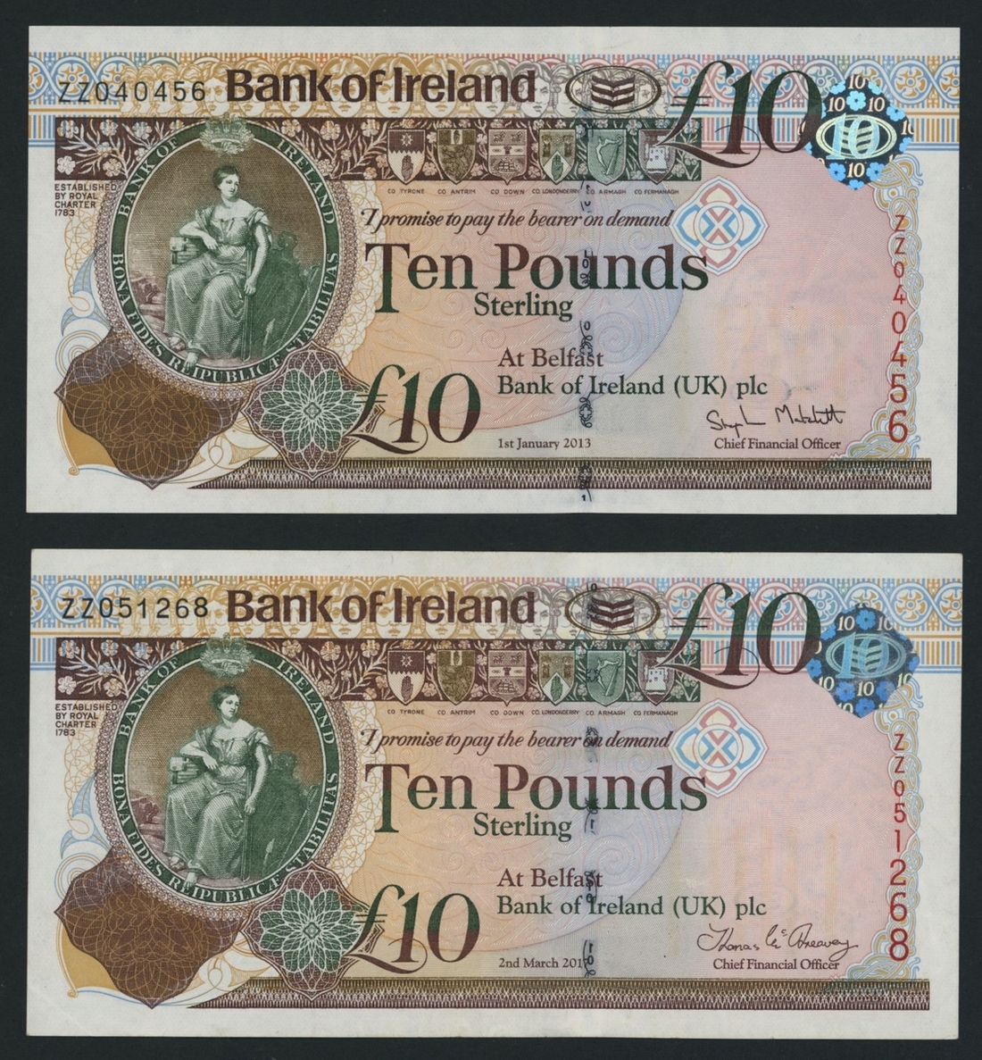 Bank of Ireland, [10 notes] replacement £10, £20, Belfast, £10 (5) 2000-2017