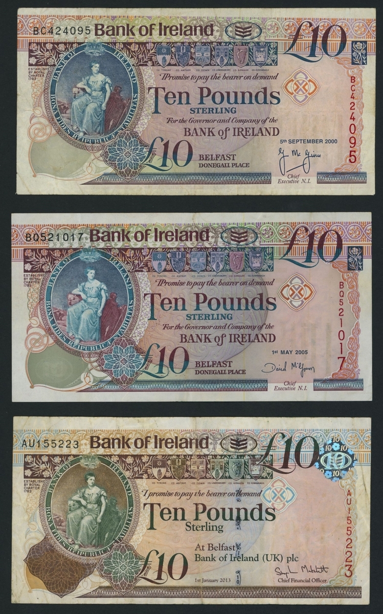 Bank of Ireland, [7 notes] £10, £20, Belfast, 2000-2013, including printing error,