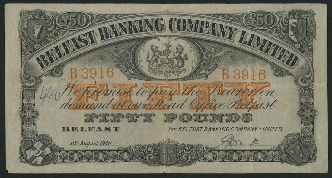 Belfast Banking Company Limited, Northern Ireland, £50, Belfast, 10th August 1940, serial number B3916, (EPM BB83), very fine