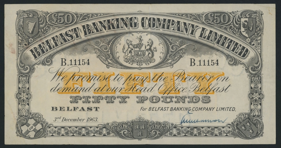 Belfast Banking Company, Northern Ireland, £50, Belfast, 3rd December 1963, serial number B.11154, (PMI BB85), very fine