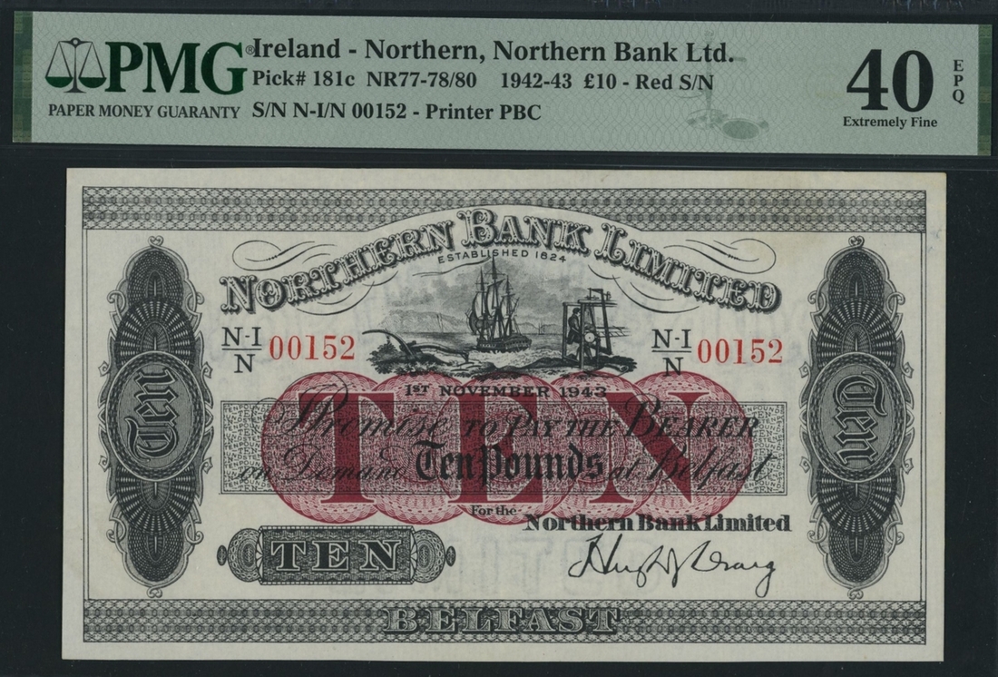 (x) Northern Bank Limited, Northern Ireland, £10, Belfast, 1st November 1943, serial number NI/N 00152, Perkins Bacon & Co London imprint on reverse