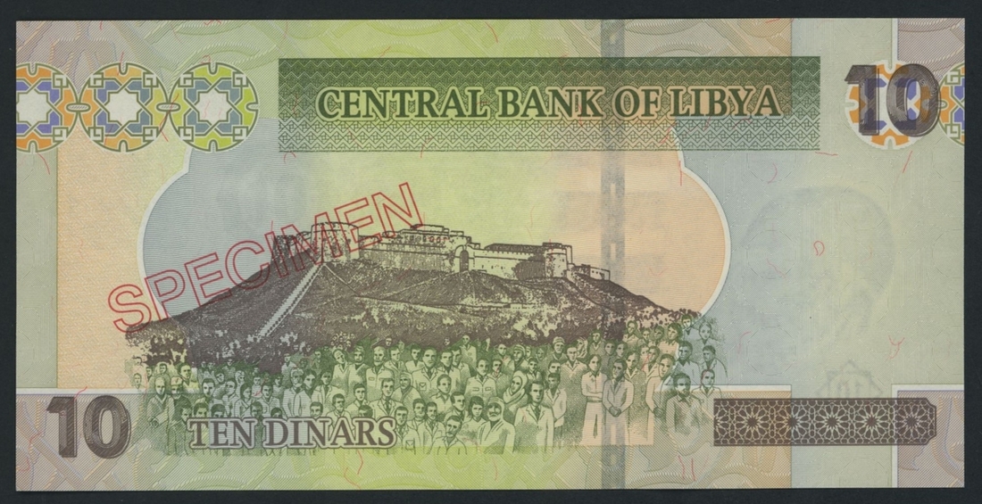 Central Bank of Libya, 10 Dinars, ND (2011), serial number 1 A/0 000000, no specimen number