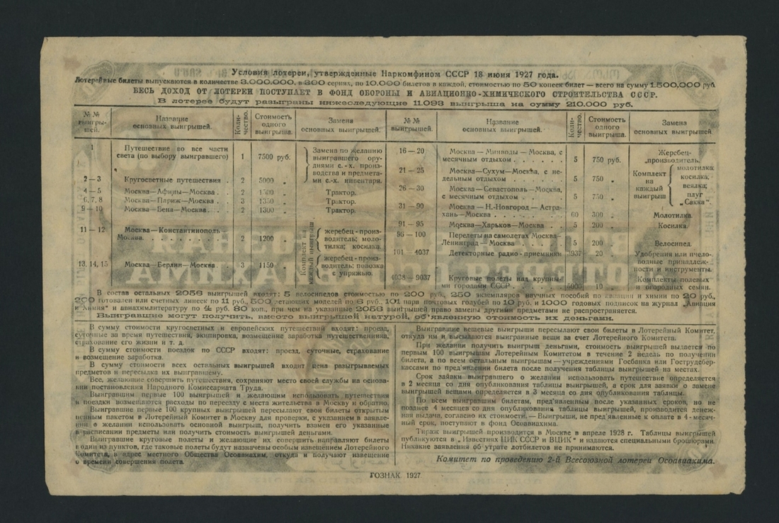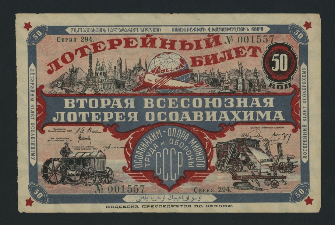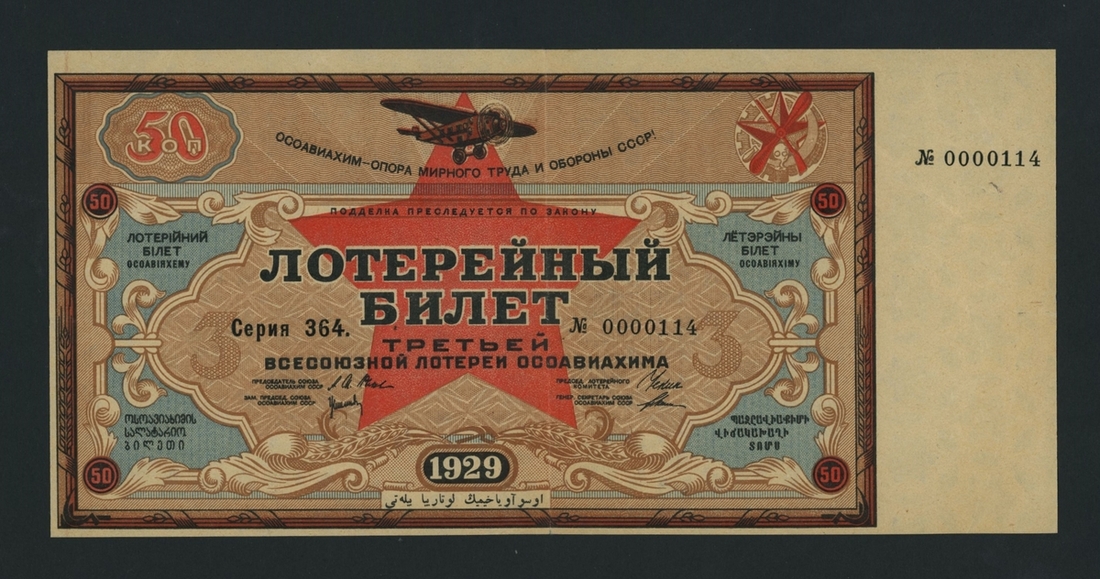 Russia, Soviet State Lottery Ticket and Share, [2 notes] 50 Kopeks, 1927-9, 50 Kopeks, 1927, serial number 294 001557;