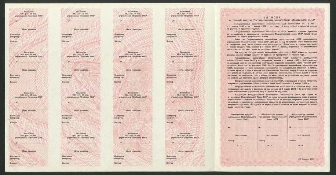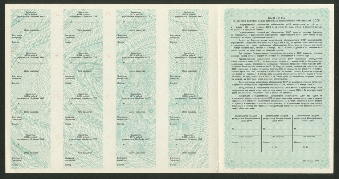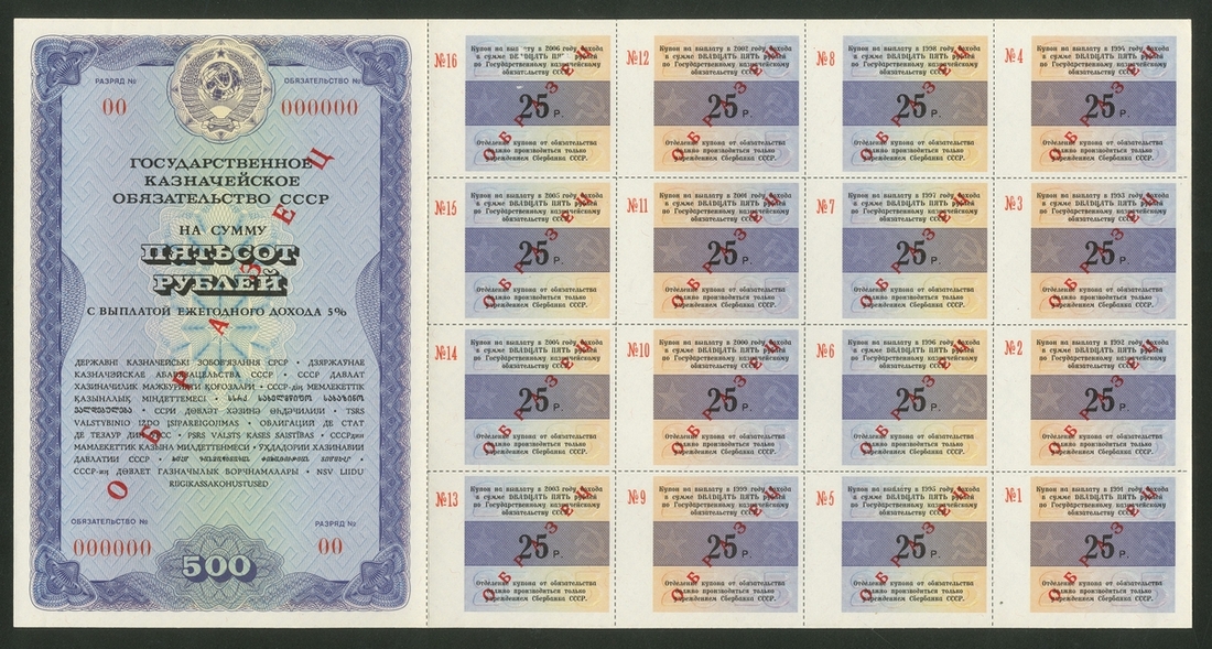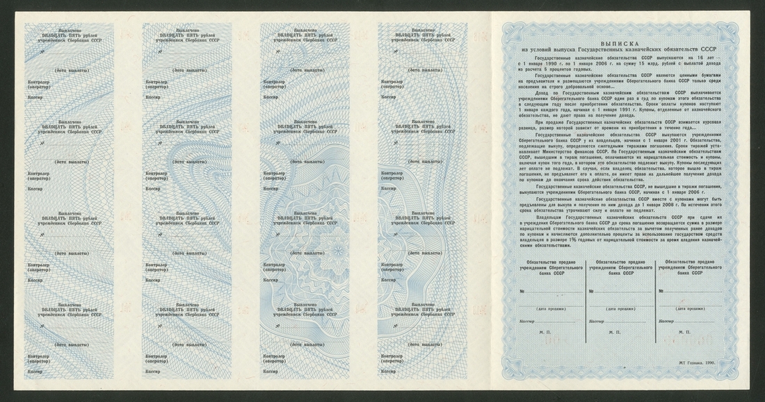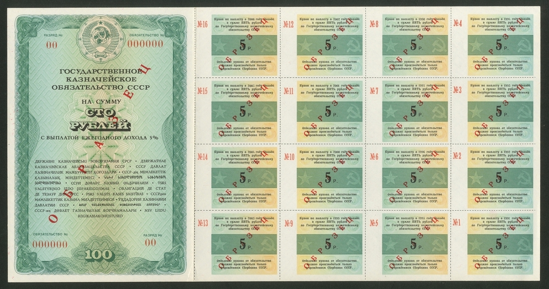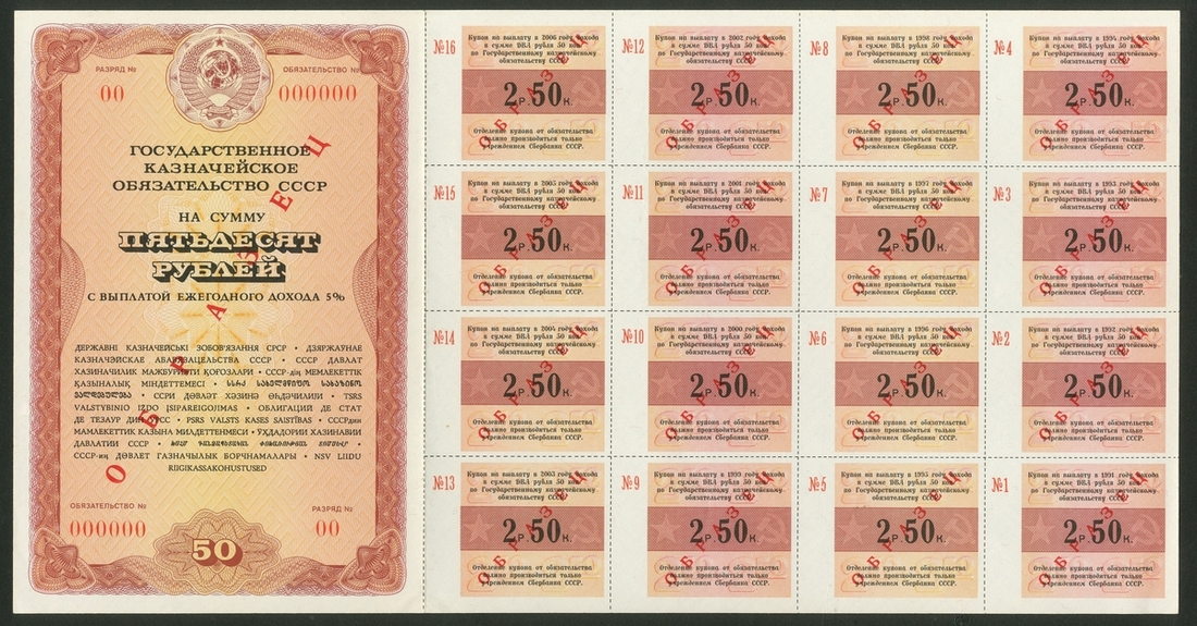 Russia, Soviet State Bond Certificates, [3 notes] specimen 2 Rubles 50 Kopeks, 5, 25 Rubles, 1990, (Pick unlisted), uncirculated, scarce (3 notes), ''Property of a British Gentleman''