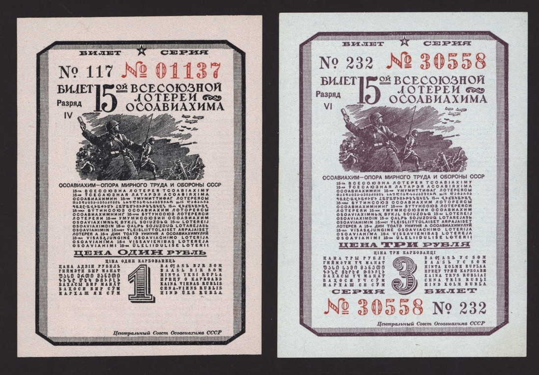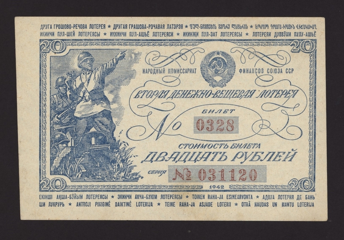 Russia, Soviet State War Loan, [3 notes] 1, 3, 20 Rubles, 1941-2, 1 Ruble, (1941), serial number 117 01137;