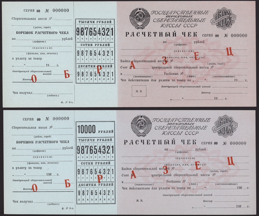 Russia, Soviet State Savings Bank Forms, [3 notes] specimens, (Pick unlisted), about uncirculated, very scarce (3 notes), ''Property of a British Gentleman''