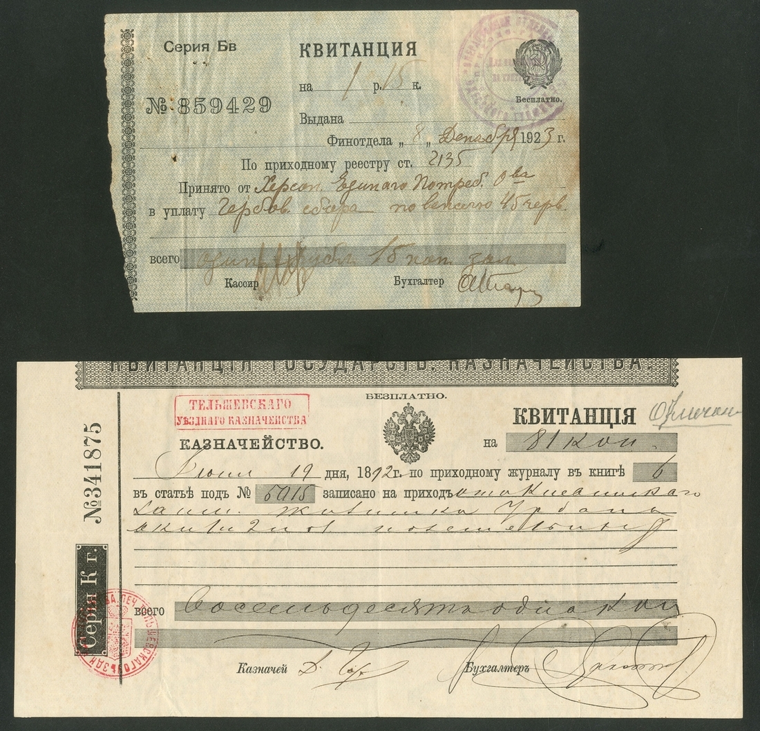 Russia, Imperial and Soviet receipts, [4 notes] 1892, 1916, 1918, 1923, (Pick unlisted), fine to extremely fine (4 notes), ''Property of a British Gentleman''
