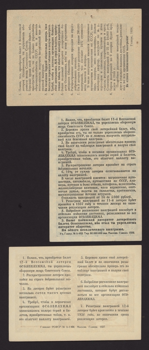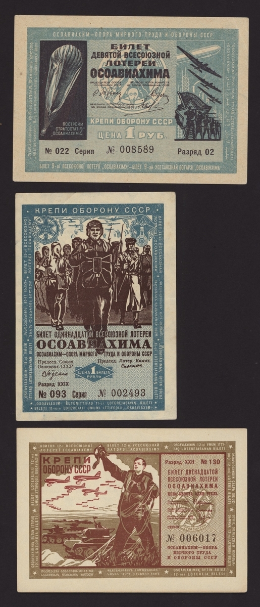 Russia, Soviet State Lottery Ticket, [3 notes] 1 Ruble, 1934-7, 1 Ruble, 1934, serial number 022 008589;