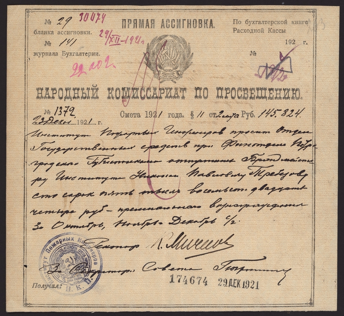 Russia, Soviet State Education Commission, 9th December 1921, certificate number 17468A, salary and appointment certificate