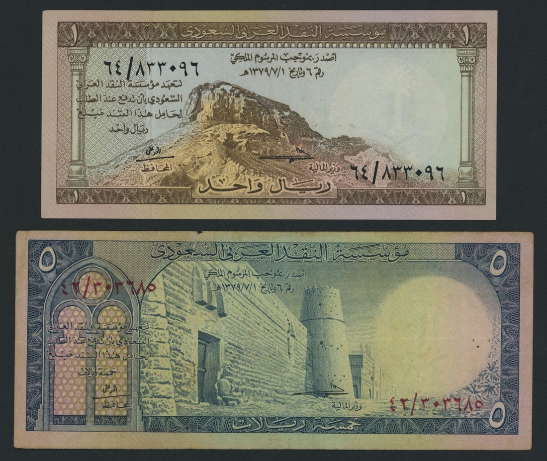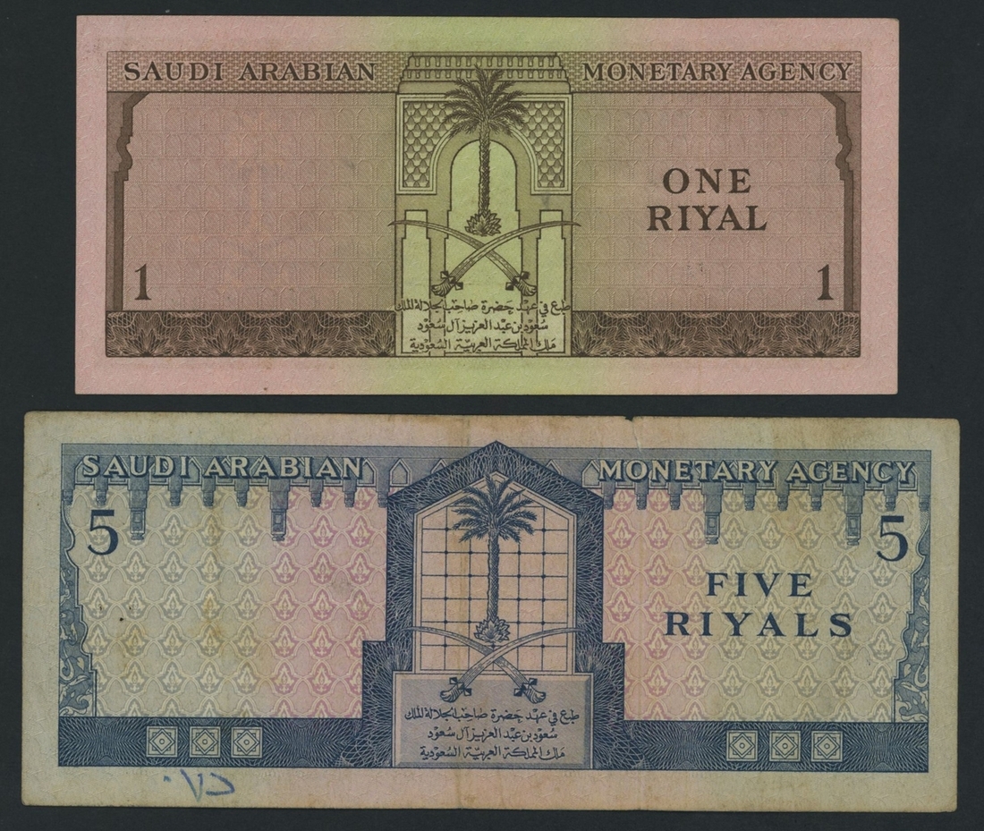 Saudi Arabian Monetary Authority, [5 notes] 1, 5, 50 Riyals, 1379,